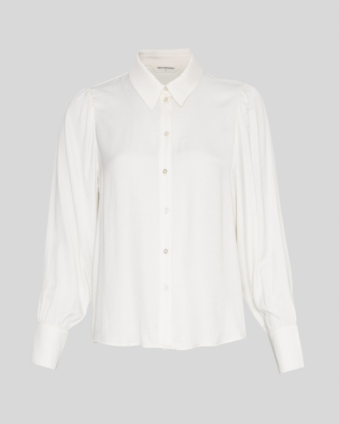 Das Maluca Shirt vereint klassische und moderne Elemente mit einem Hauch Pyjama-Stil. Sie ist leicht und fließend mit Ballonärmeln, einem klassischen Kragen und Bündchen. Die weiße Farbe und der schimmernde Stoff machen sie perfekt, um Jeans aufzuwerten oder bei formellen Anlässen zu tragen.