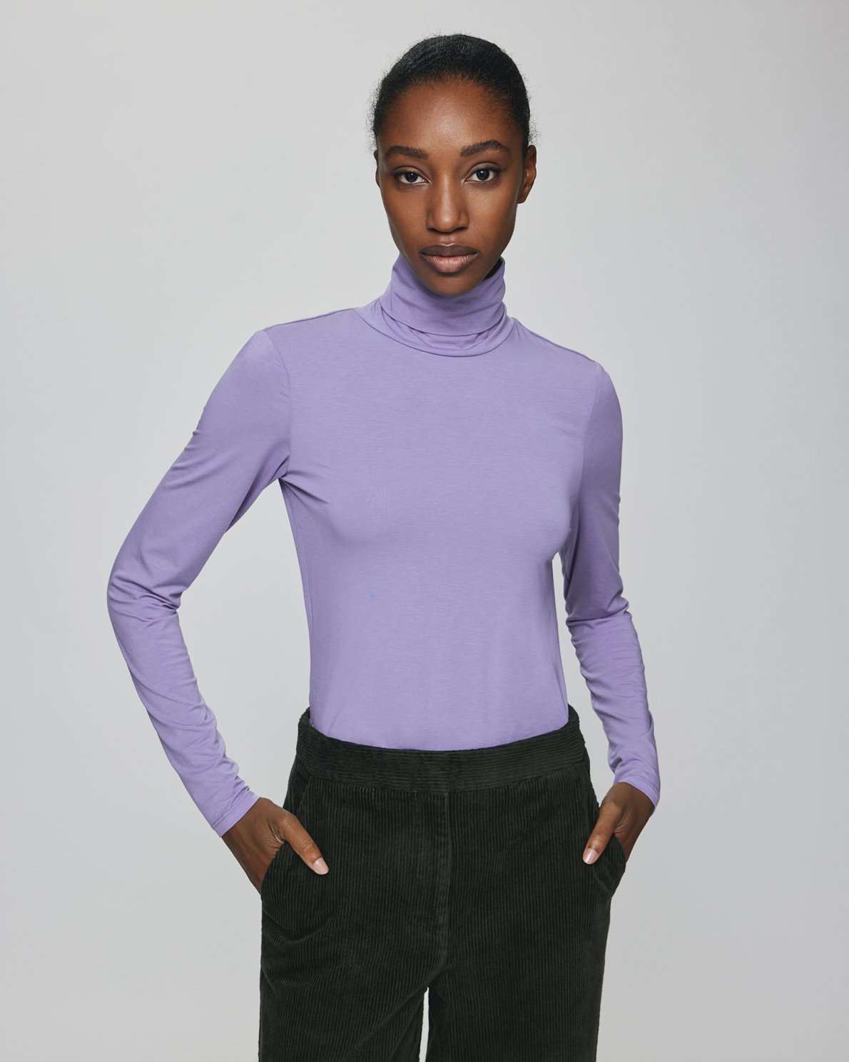 The Betrina top is a basic necessity in every wardrobe, with it's long sleeves and a classic roll neck, it's an item you can't live without. It's versatile and can be used under knits as an exra layer to keep you warm, or wear it uner your blazer as a monochrone look. It's slim fit so it's perfect for layering.