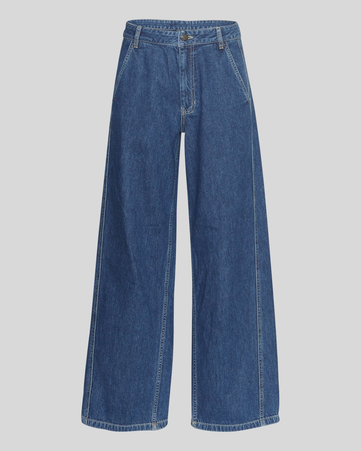 Our Jilette jeans is a high waisted, wide legged, loose fitted jeans that will fit perfectly into both the oversized and denim trend. This colour is mid blue, perfect for autumn. The jeans features a zip and fly closure, with pockets, belt straps and has a modern touch with the extra side seam.