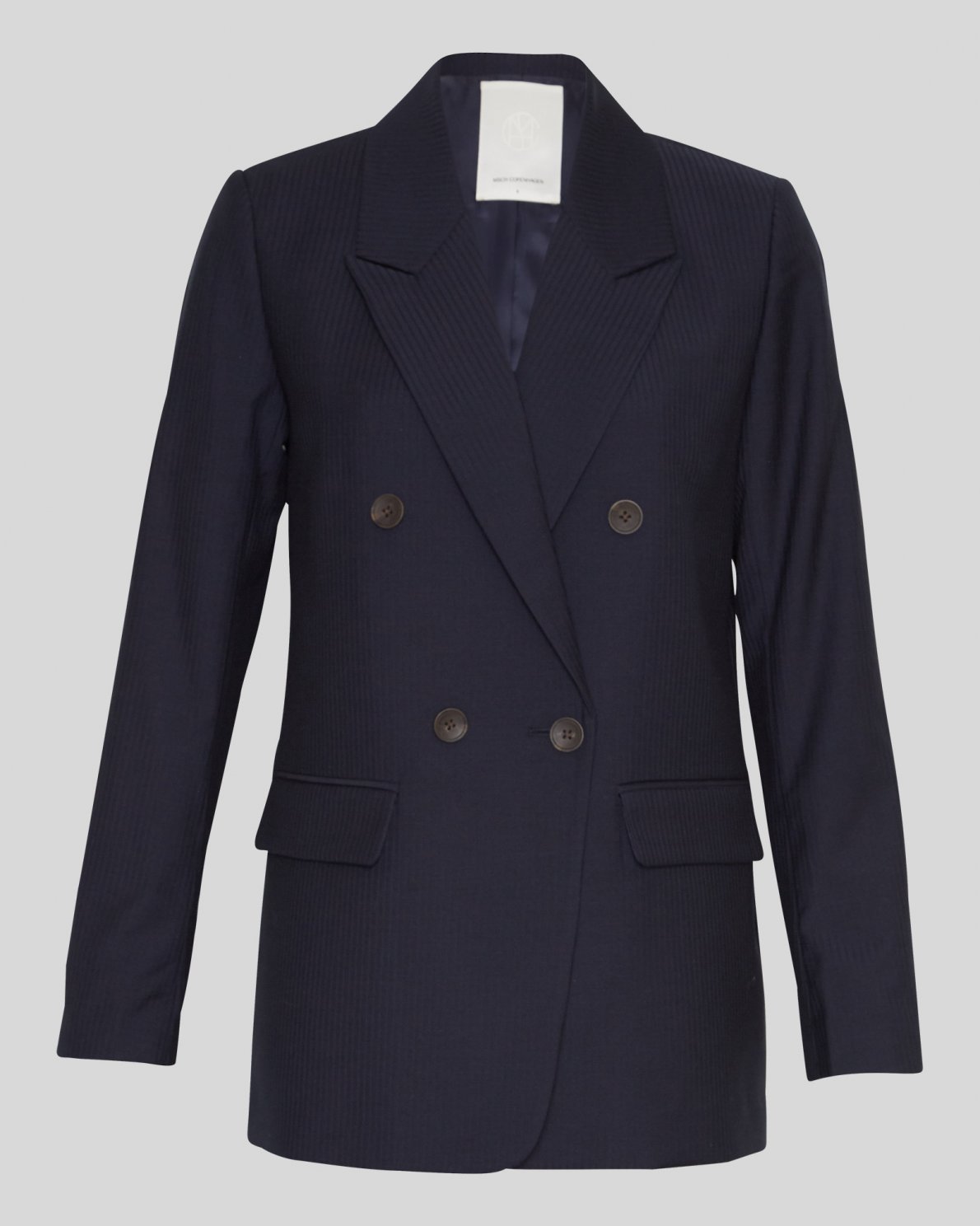 The Maelynn Blazer STP is a double-breasted blazer crafted from a luxurious wool blend, designed to deliver both warmth and impeccable style. This blazer features a half-canvas tailoring finish, ensuring a structured and durable construction that maintains its shape over time. Refined hand-stitched interior craftsmanship adds a touch of sophistication, while the tailored shoulder pads create a sharp, well-fitted silhouette. Perfect for both professional and formal settings, the Maelynn Blazer offers an elegant, polished look. Pair it with the matching pants or vest for a complete, tailored ensemble that stands out in cooler weather.
