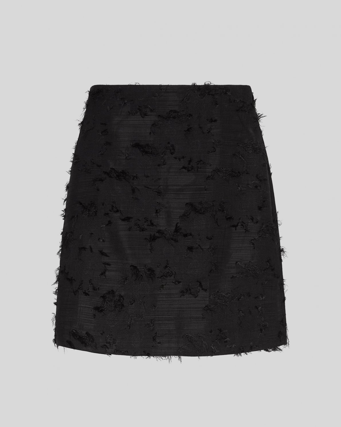 A classic mini skirt with a twist. It features structured a material which brings the skirt to life. It features a hidden zip closure. Style it with the matching blazer, a pair of stocking and cool boots.