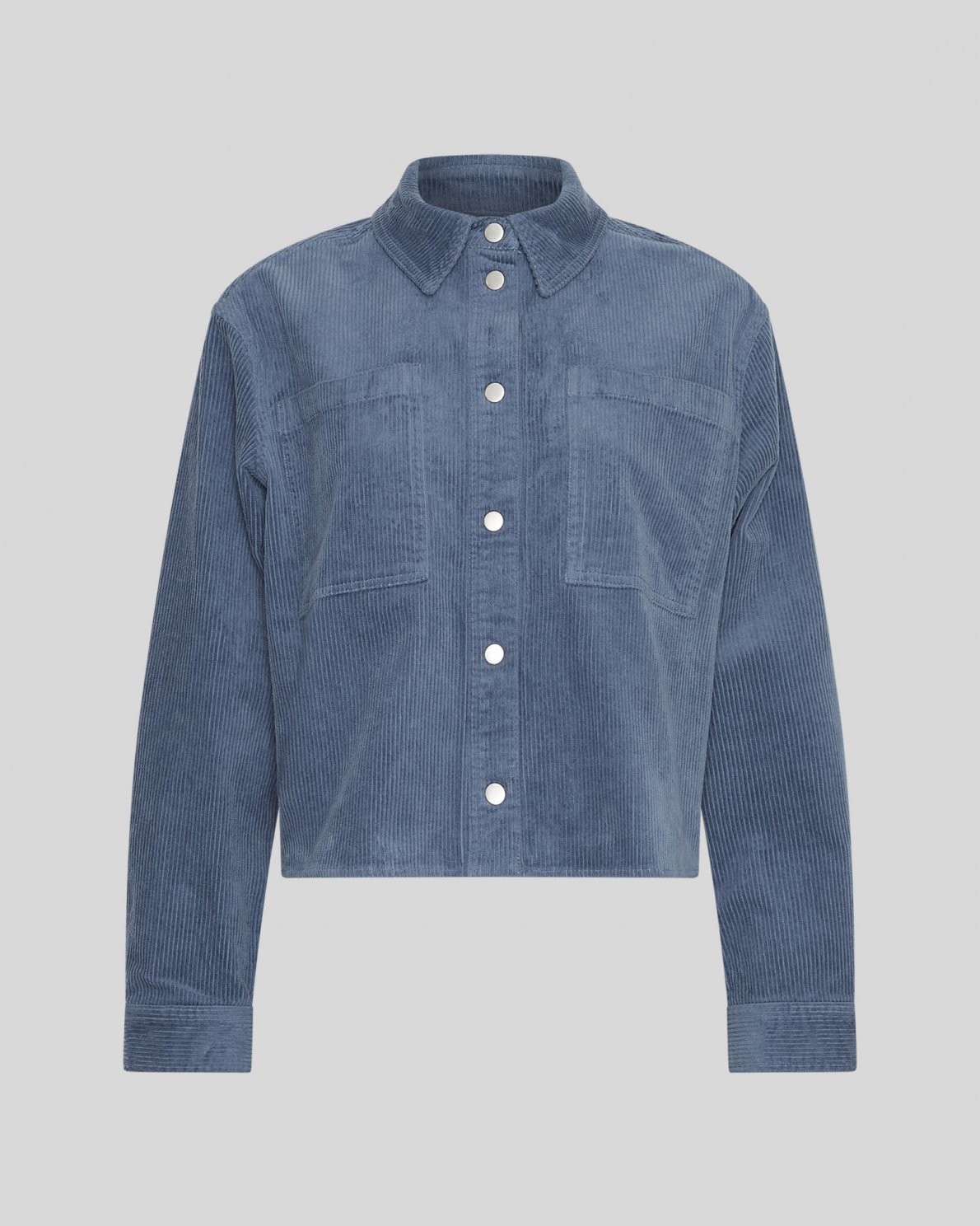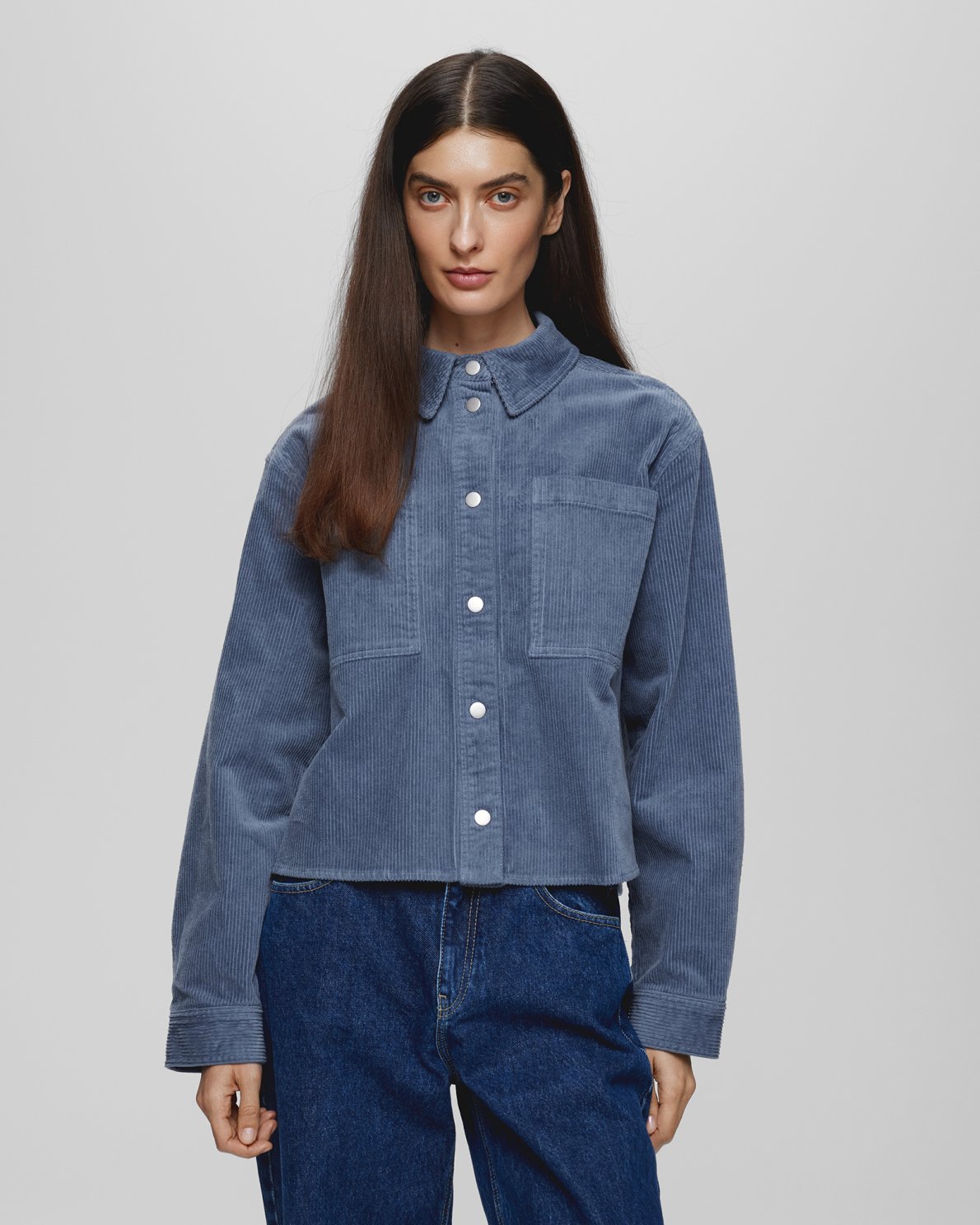 A minimalistic corduroy overshirt that blends fashion with comfort. It is designed with a corduroy fabric, offering a cozy and soft texture, perfect for the colder seasons as a layering piece. This silhouette features a double front pocket, adding a touch of utility while maintaining a sleek and chic look. The button closure adds a functional detail, allowing you to wear it open or closed, depending on your style.