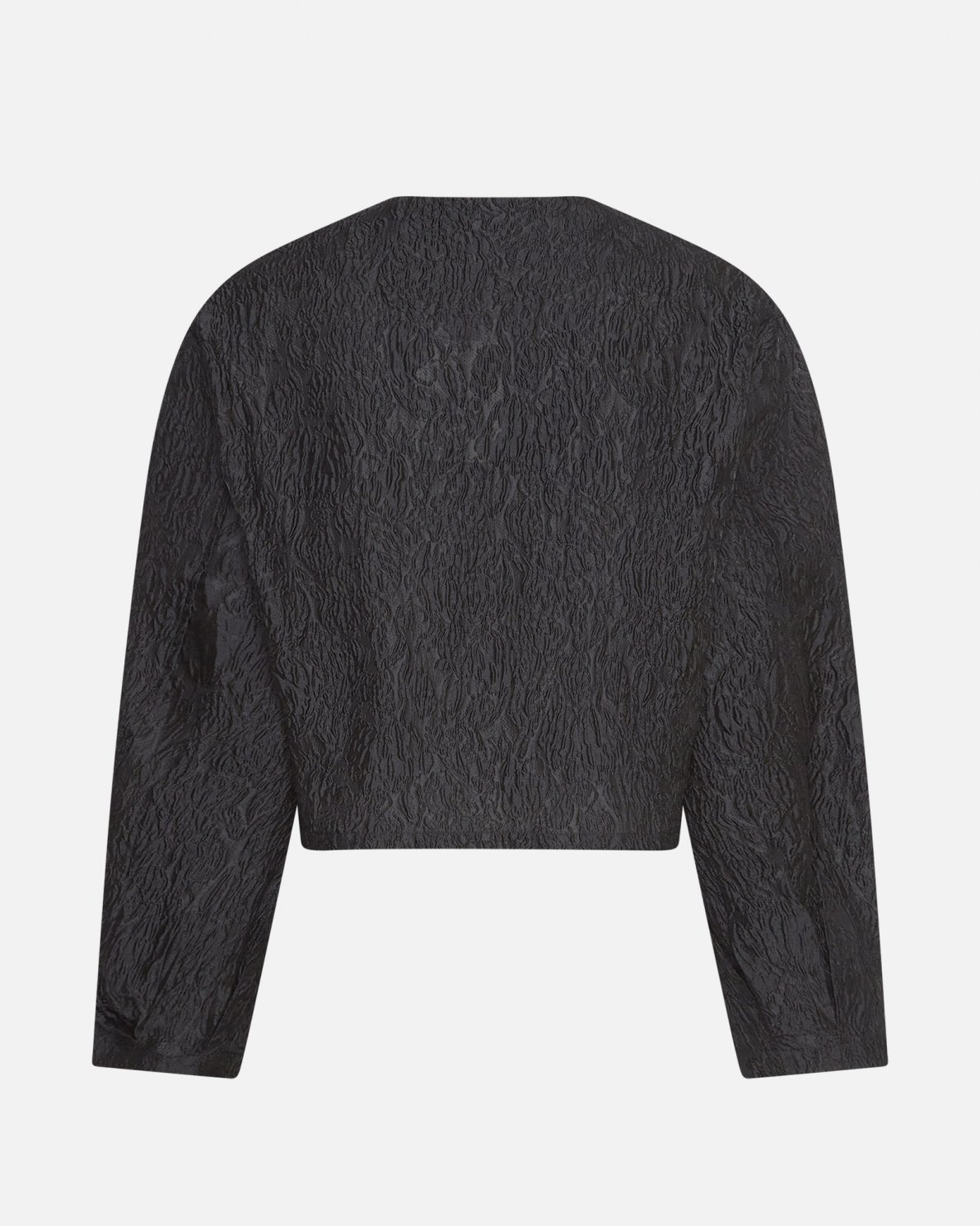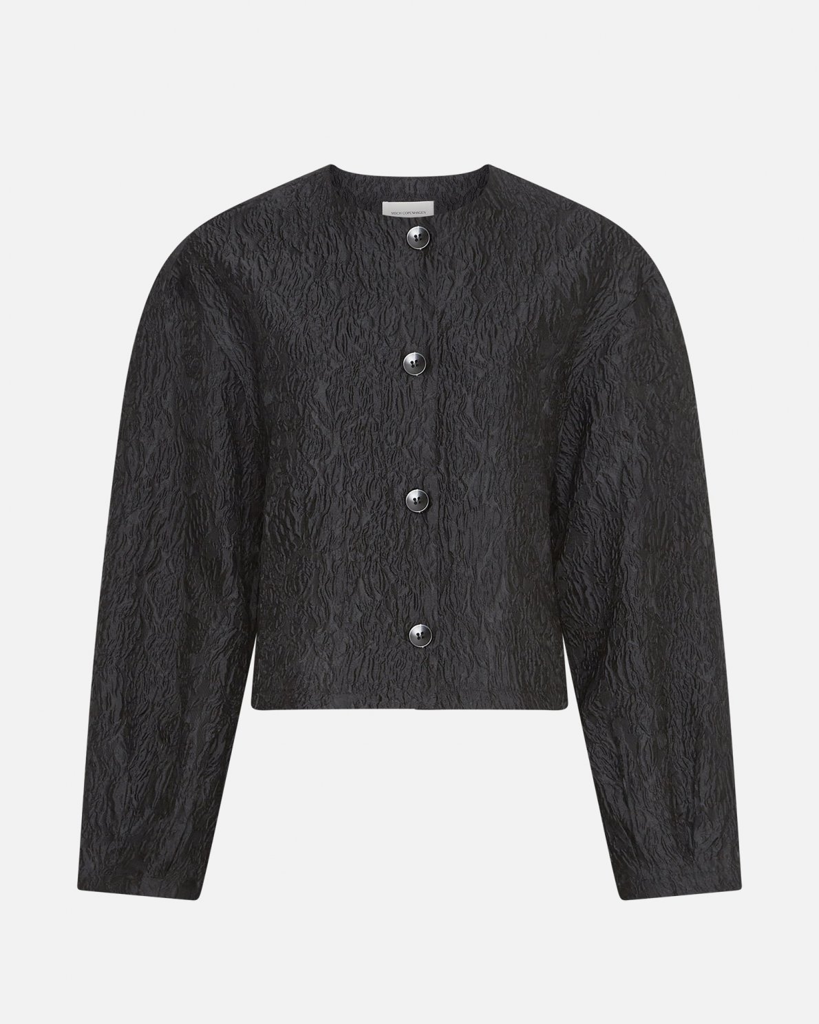 Our Irie shirt is divine as it's created in a beautiful, crinkle textured material with a bit of shine to it. The shirt features a round neckline and big buttons down the front. The sleeves both have dropped shoulders and is voluminious. It can be styled both as a shirt and a small jacket like a blazer.
