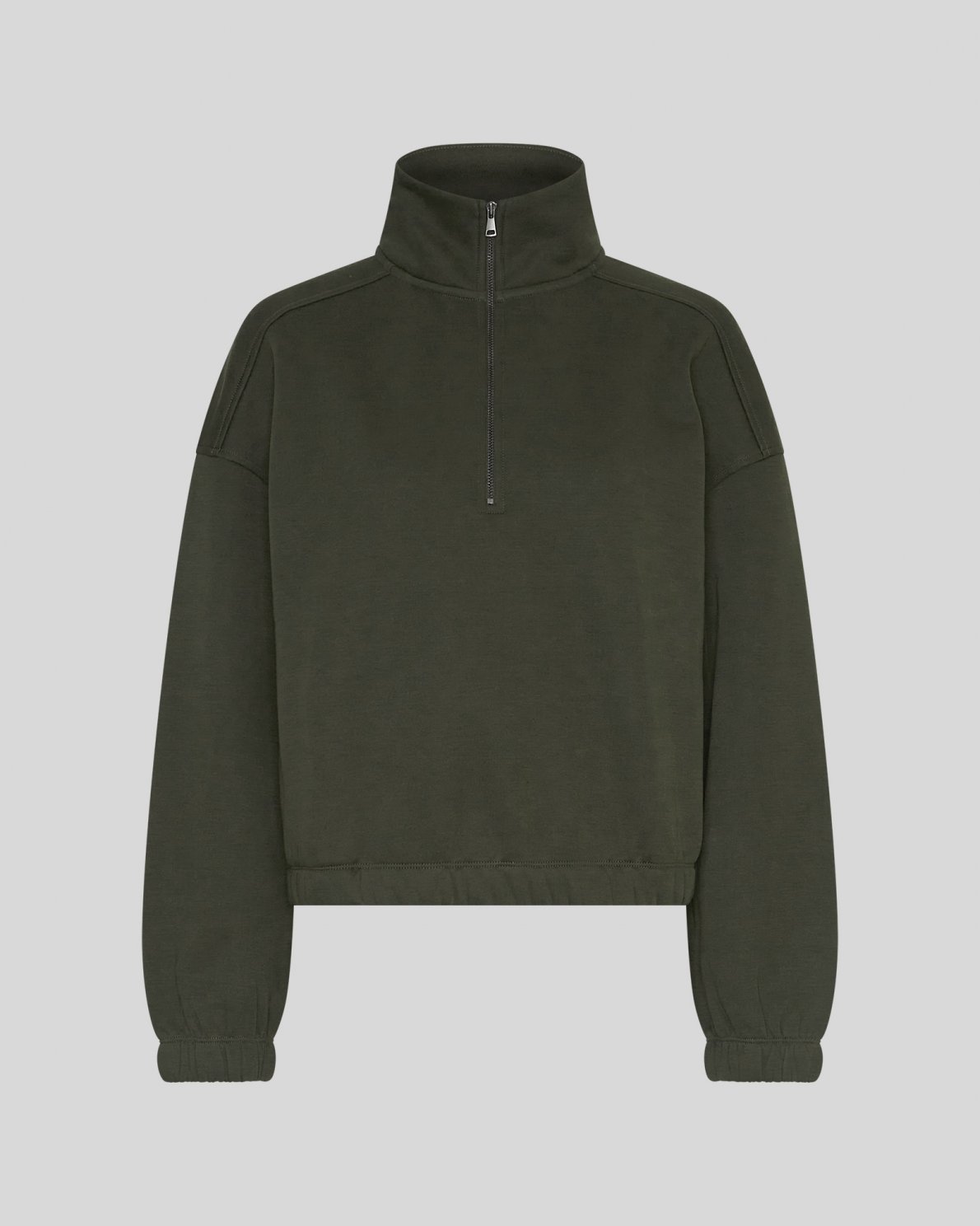 Our newest sweat-set addition is the Ethella collection, in this soft dusted blue nuance. The Ethella sweatshirt features a high neck with a half zip, a long sleeve design with elastic cuffs and dropped shoulders to give an overized look. The set comes with a matching pair of sweatpants.