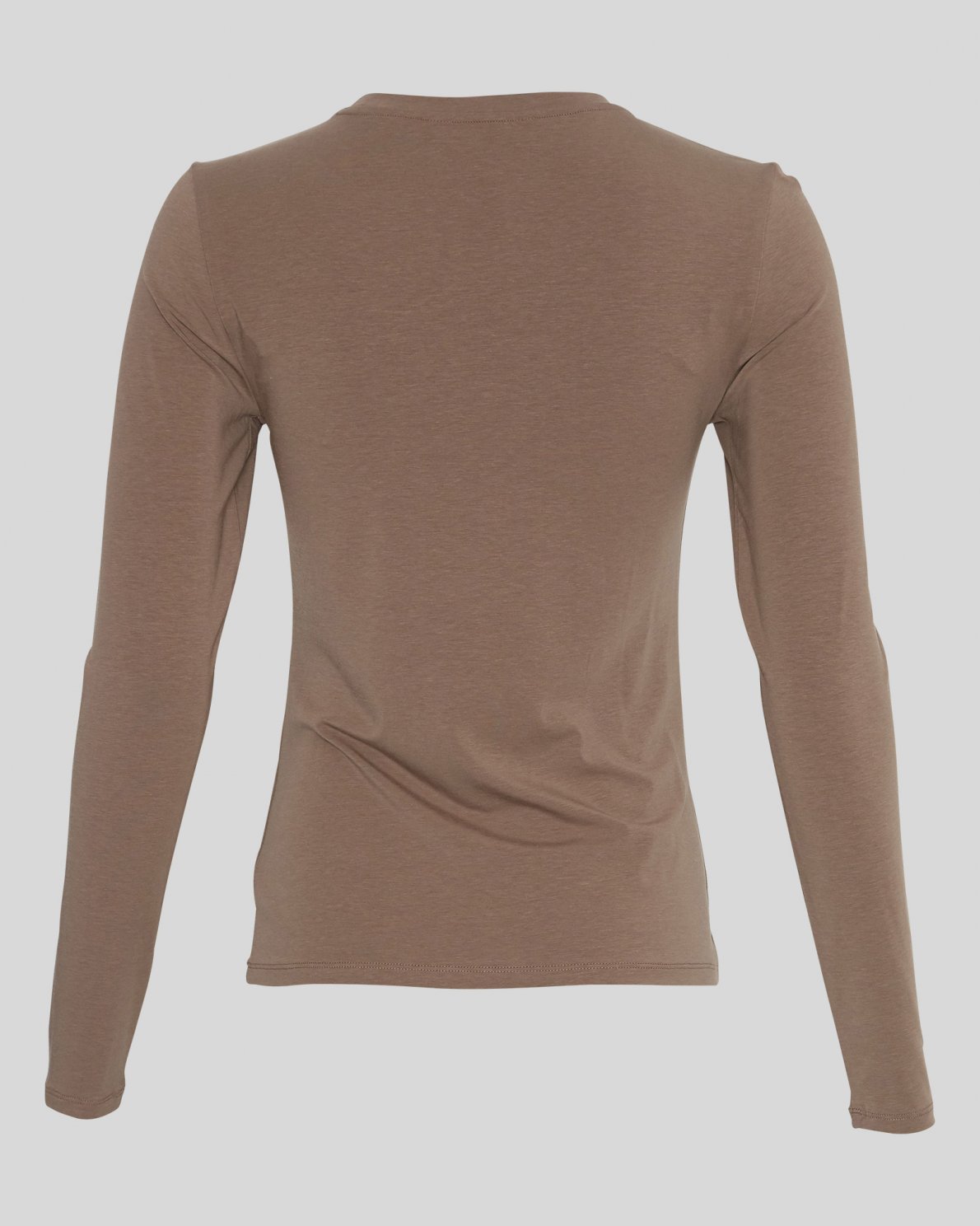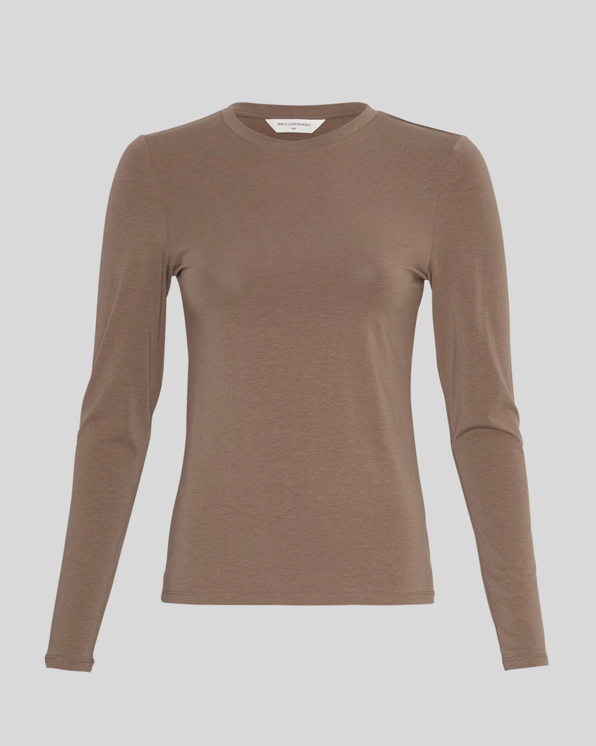 The Betrina top is a basic necessity in every wardrobe, with it's long sleeves and a classic O neck, it's an item you can't live without. It's versatile and can be used under knits as an exra layer to keep you warm, or wear it uner your blazer as a monochrone look. It's slim fit so it's perfect for layering.
