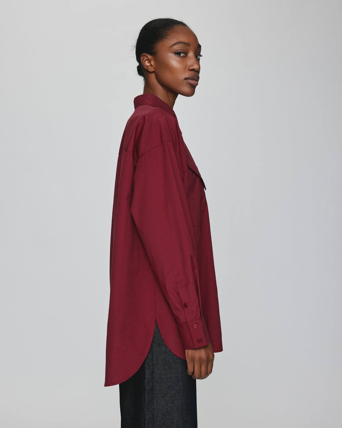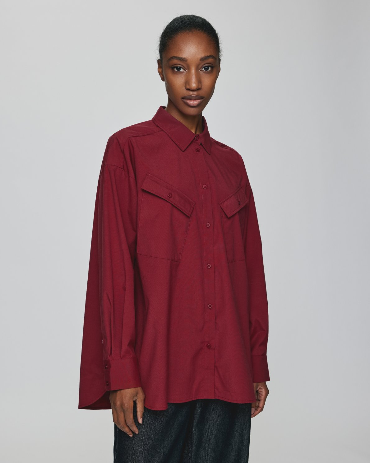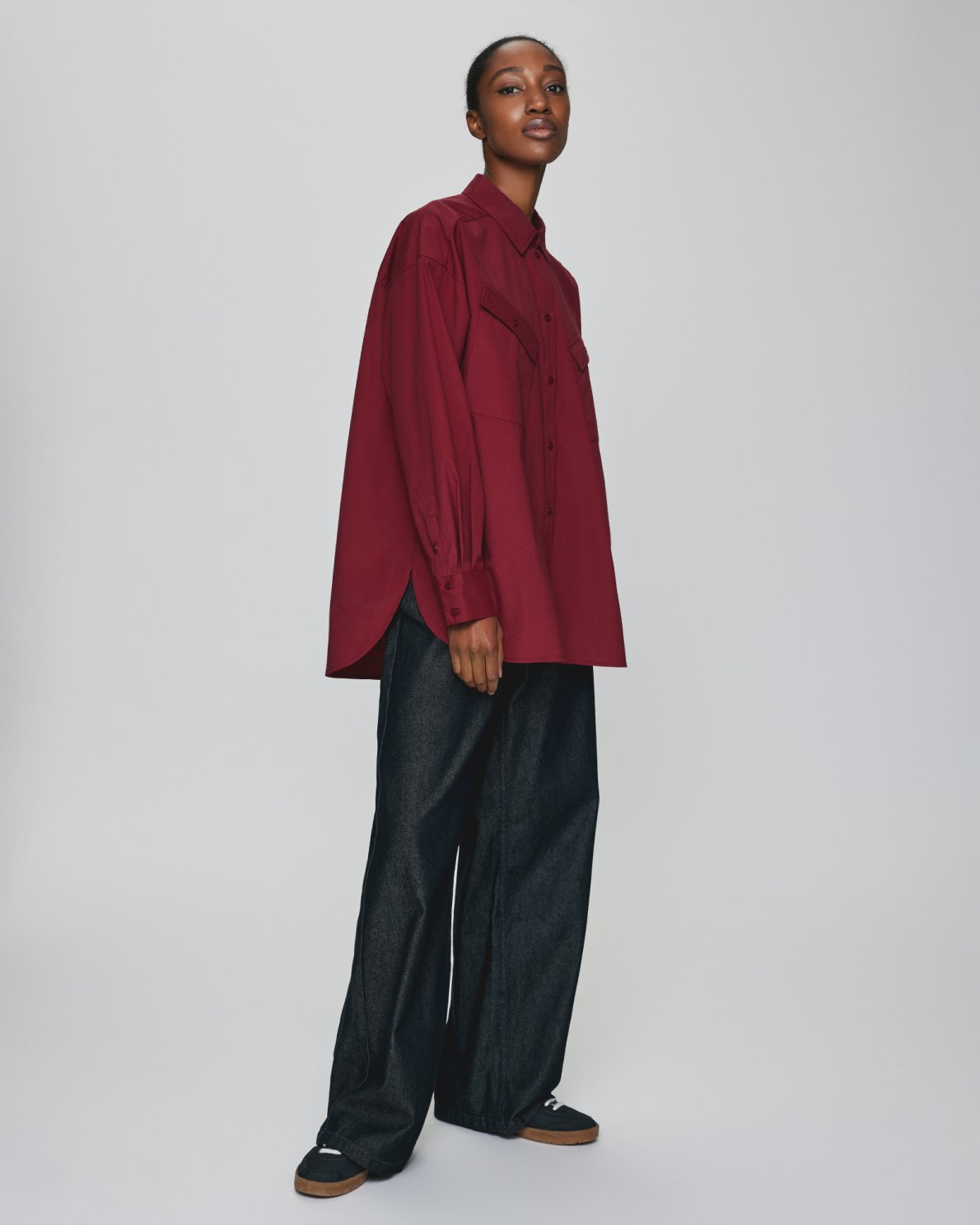 Mina is an oversized shirt, filled with details to give the shirt personality. The shirt features a classic collar with a full placket down front, the shoulders are dropped and loose with long sleeves. There's is two slant chest pockets which gives the shirt a western vibe.