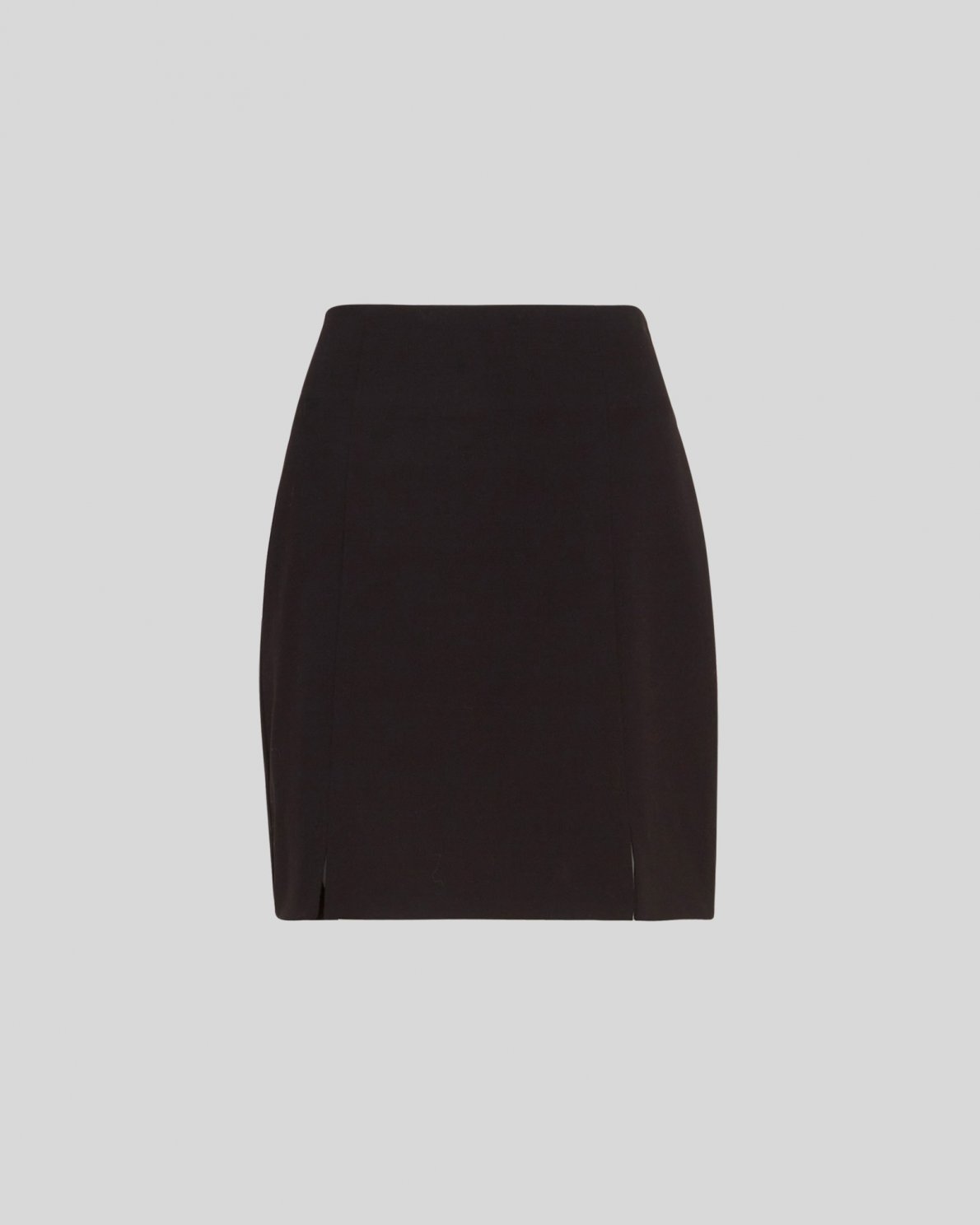 Unser Cally Skirt, ist ein hochgeschnittener Minirock in schmaler Passform. Es hat zwei kleine Schlitze an der Vorderseite, sowohl aus gestalterischen Gründen als auch, um mehr Bewegungsfreiheit im schmal geschnittenen Rock zu ermöglichen. Kombinieren Sie ihn elegant mit einer Bluse für formelle Anlässe oder leger mit einem Pullover für den Alltag.