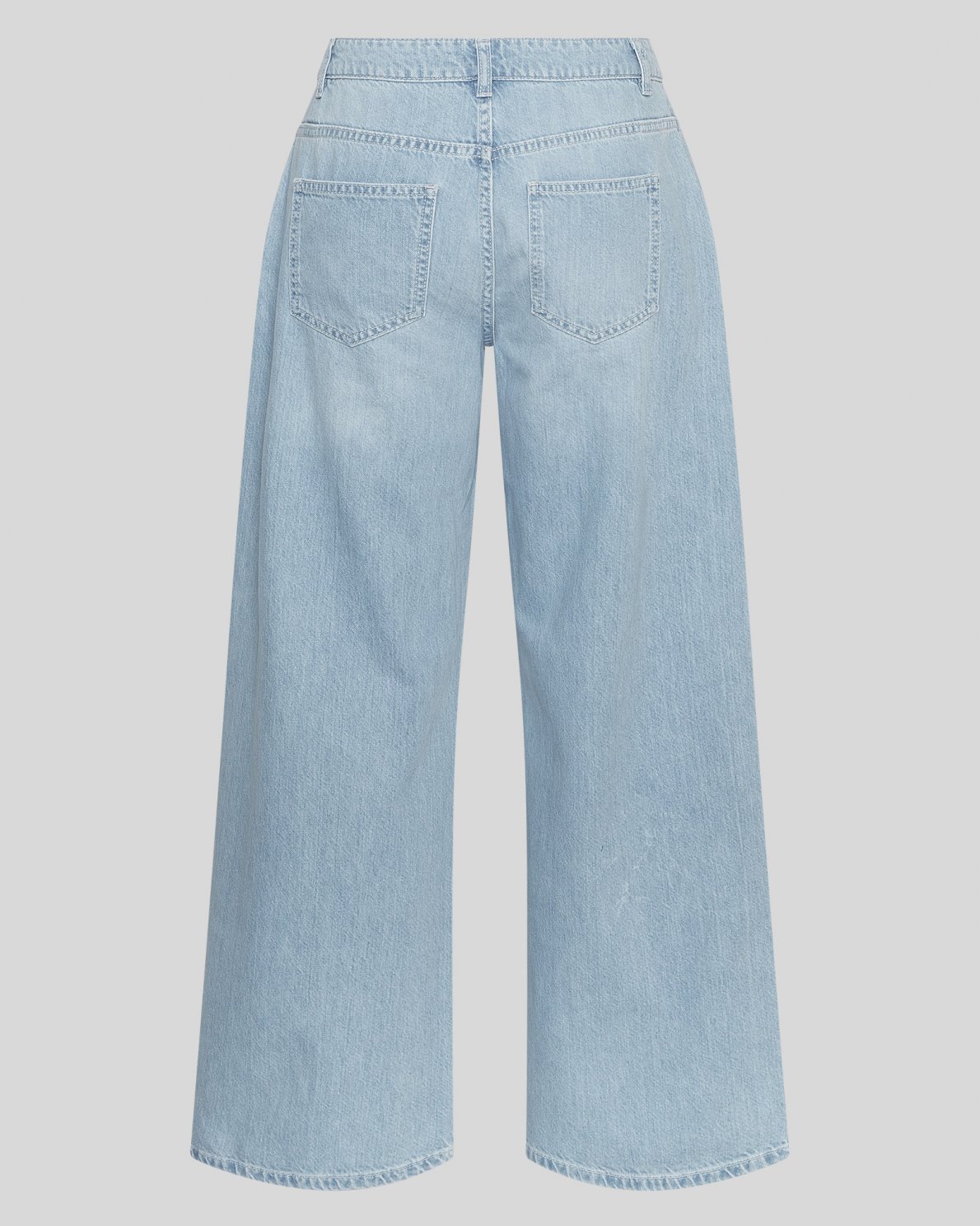 Our Ingrid jeans is a new wide legged style, that has a high waist and a subtle washed colouring to it. These jeans are the perfect everyday style. The jeans feature slant front/side pockets and 2 back pockets.