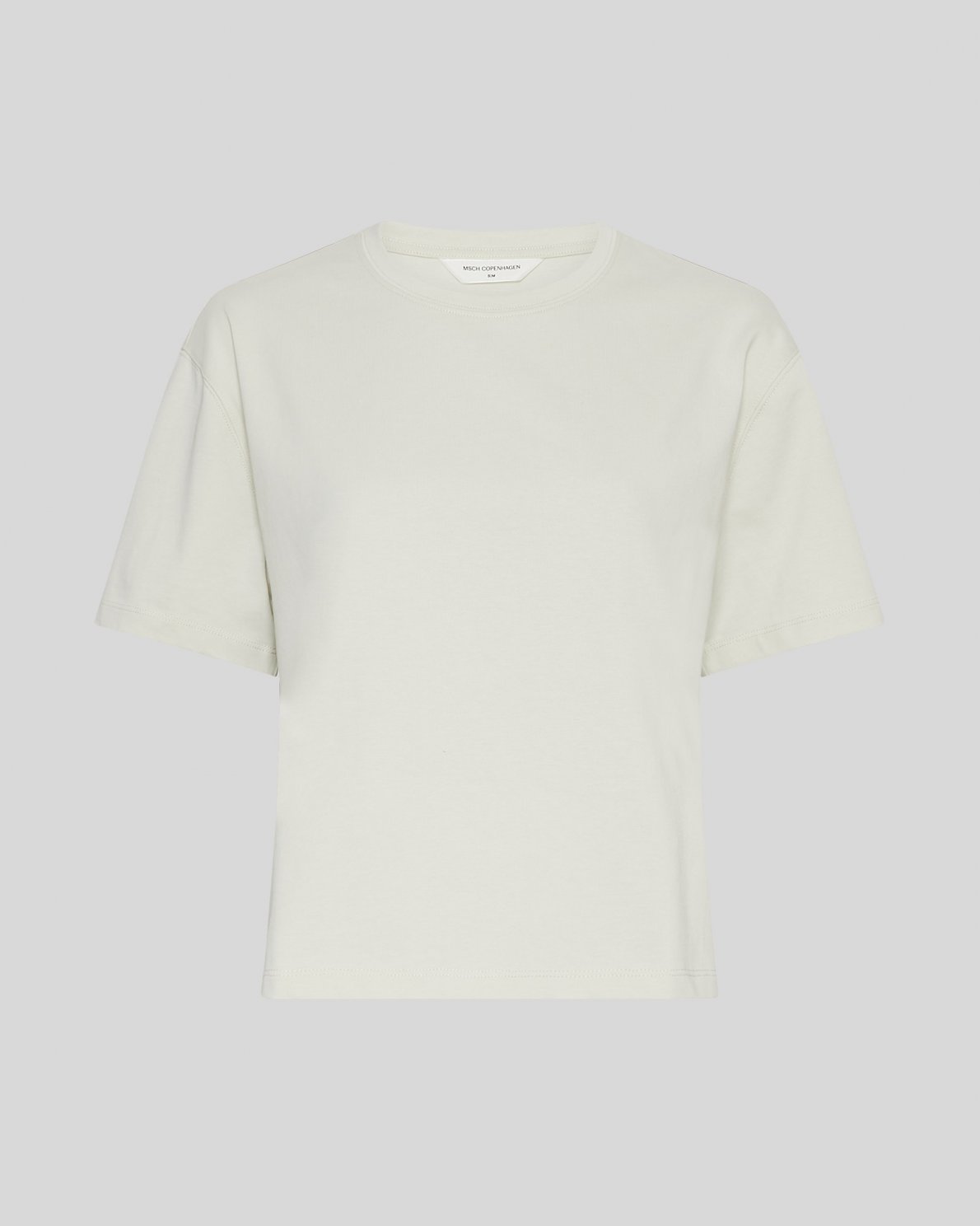 A classic, heavy cotton t-shirt with a round neckline and two small side slits, adding a bit of extra life to a simpelt t-shirt. The T-shirt is a bit longer in the back compared to in the front. This is perfectly styled with a pair of jeans for a causal fit.