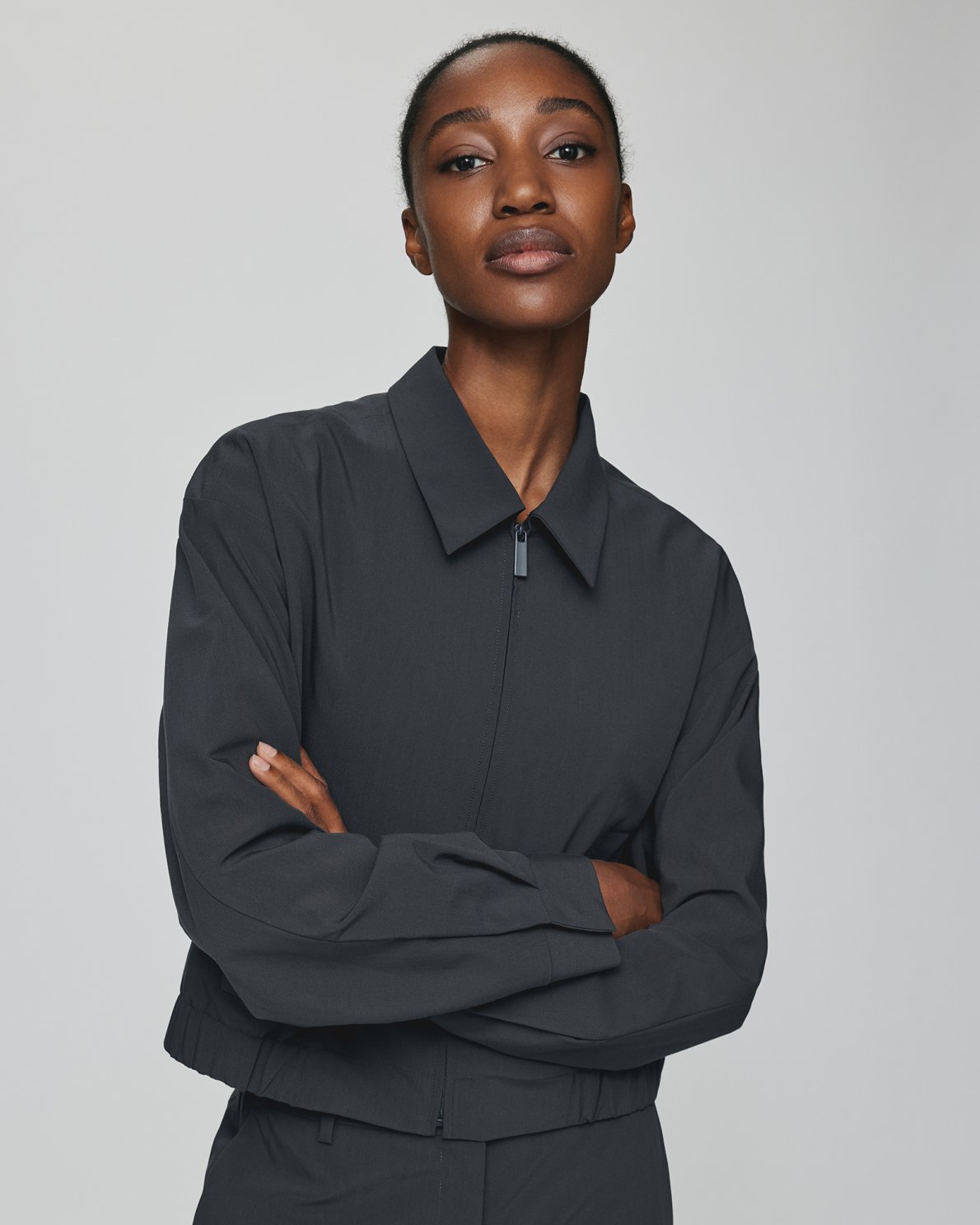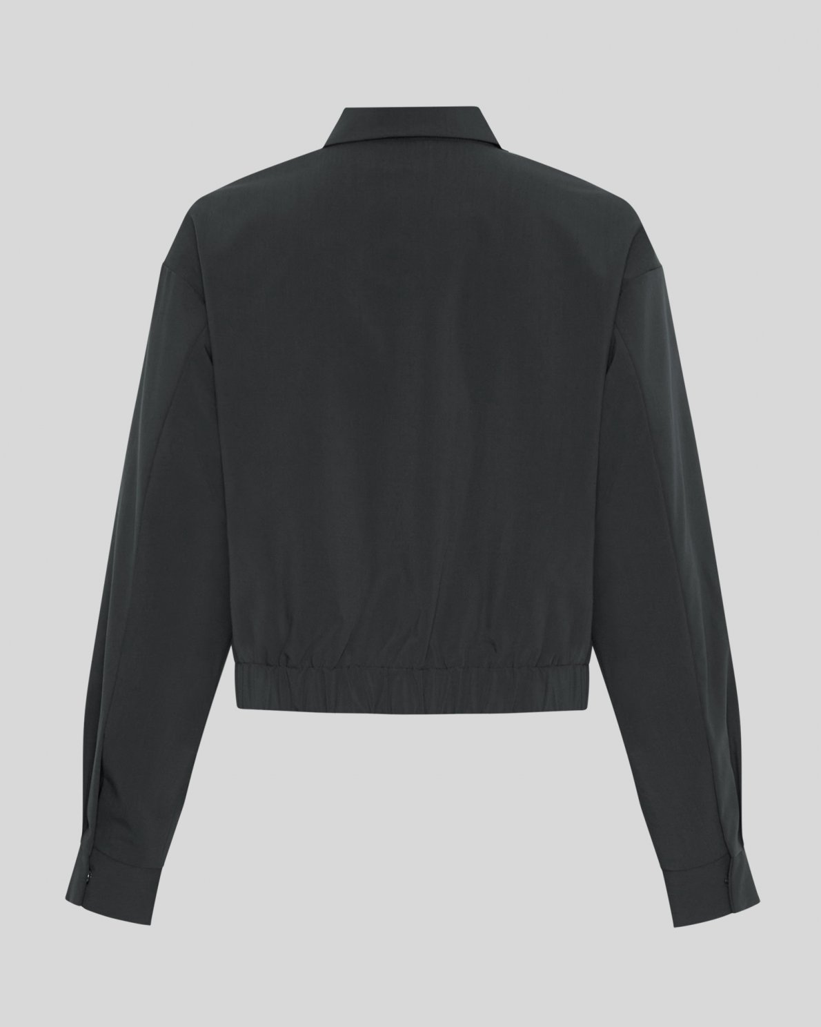 The Cassie bomber jacket, is a stylish indoor jacket which features a classic collar and zip down the front and has 2 side pockets. It has a short fit and will beautifully match any high waisted skirt og pant.