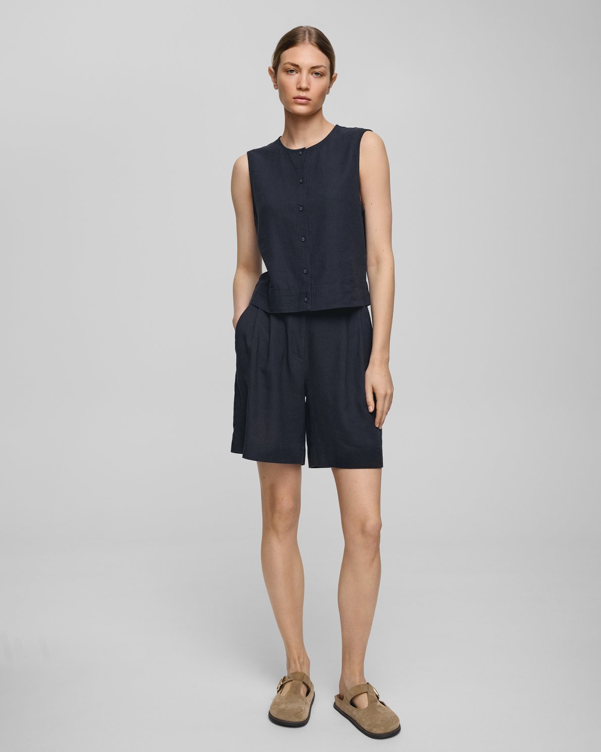 The Pennie collection is a range of products made from linen and cotton, designed to be your favorite pieces for the summer. Easy and breasy, wearable styles, to mix and match as you like. These shorts feature an elastic waistband with a button closure, side pockets and pleats in the front.