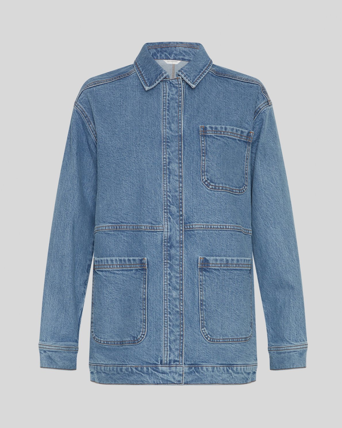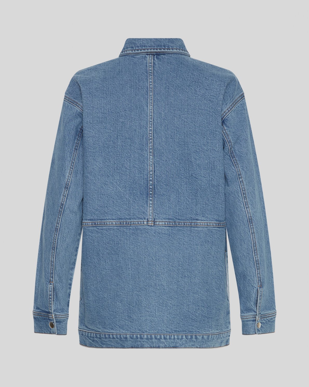 Our Eli Ada denim jacket is a longline jacket, that features 3 front pockets, a hidden placket with buttons and a shirt like collar. This jacket has a very 90's inspired look to it. Style it with the matching Eli Ada jeans or vest.