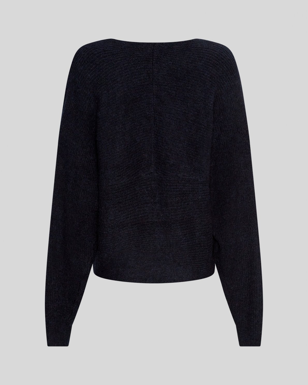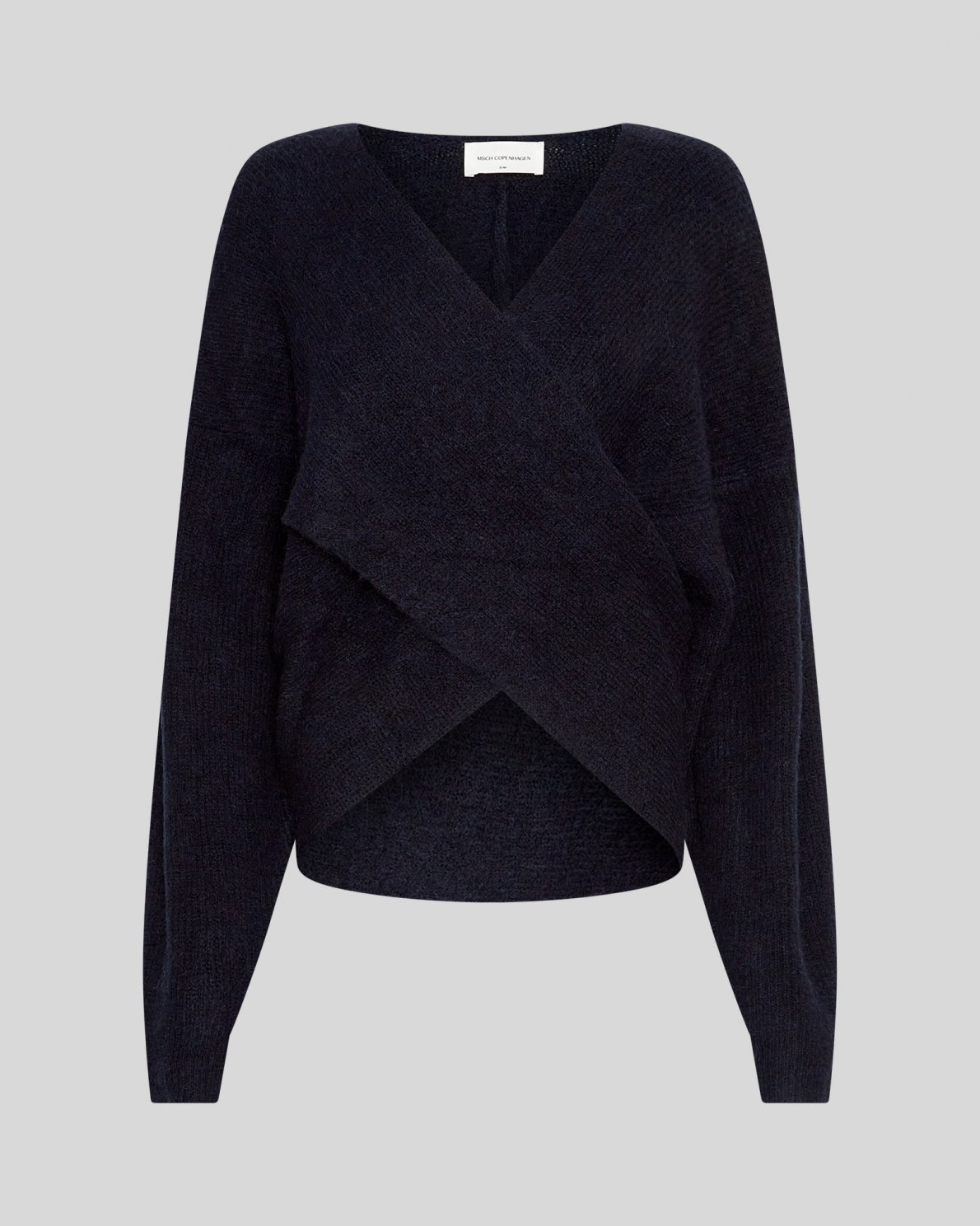 Wrap yourself in style with this chic pullover that offers a blend of timeless sophistication and modern flair. The half cardigan pattern adds a touch of intrigue to the classic knit design, creating an exquisite visual that sets you apart from the crowd. The wrap silhouette drapes gracefully, highlighting your figure and offering a flattering fit for all body types. It features dropped shoulders with a soft, cozy feel. This pullover is a highly versatile stye, seamlessly transitioning from day to night. Whether attending a cozy daytime gathering or a chic evening outing, this pullover exudes confidence and charm. Pair it with black washed jeans for a minimalistic look.