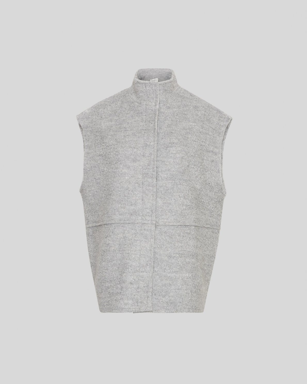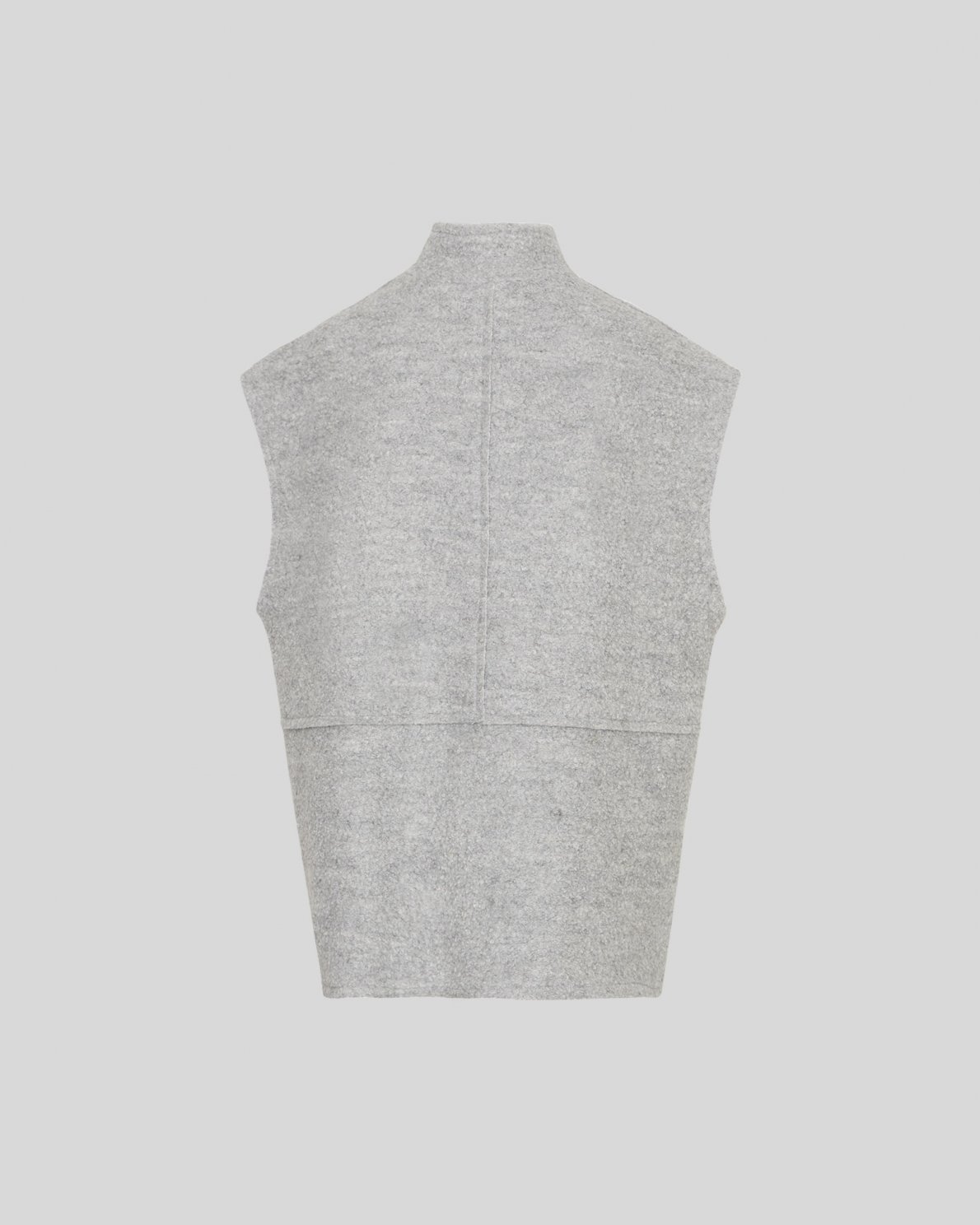 The Jerilyn vest is a boucle vest that combines sophistication and contemporary style. The vest features a high neck, push button closure and hidden side pockets. It's a versatile layering piece that can be used both as an indoor and outdoor item.