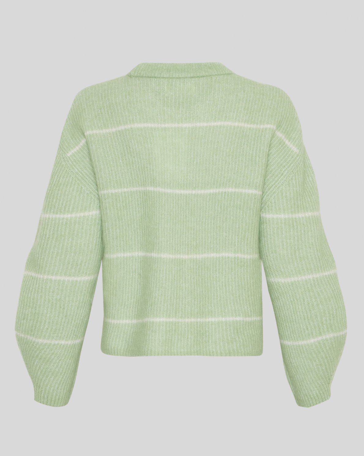The Ethana pullover is a soft knitted quality, with a round neckline, shaped sleeves and a simple striped design. The pop of colour is a bold choice but will add character to any outfit.