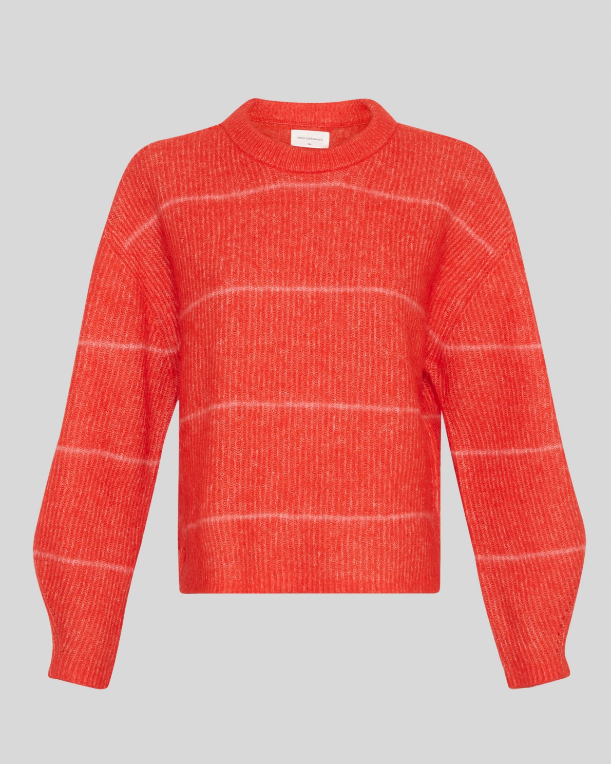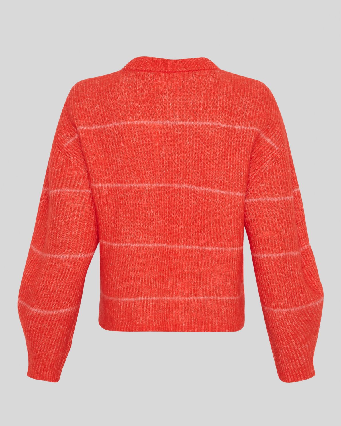 The Ethana pullover is a soft knitted quality, with a round neckline, shaped sleeves and a simple striped design. The pop of colour is a bold choice but will add character to any outfit.