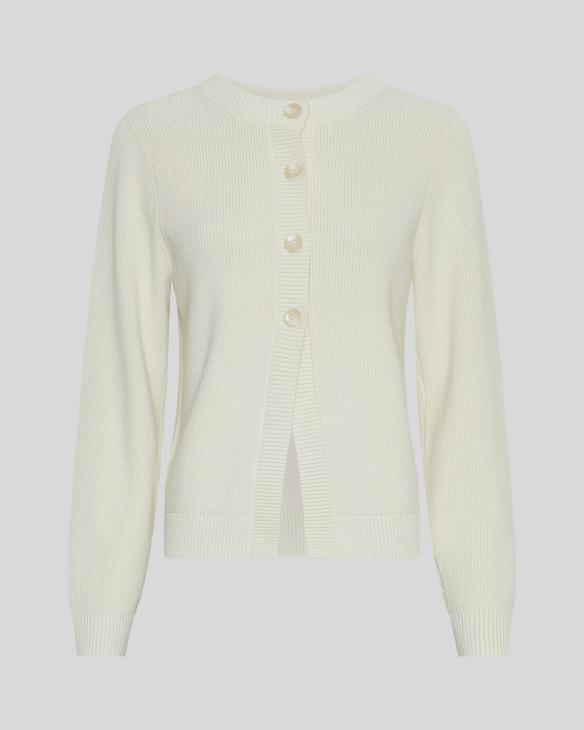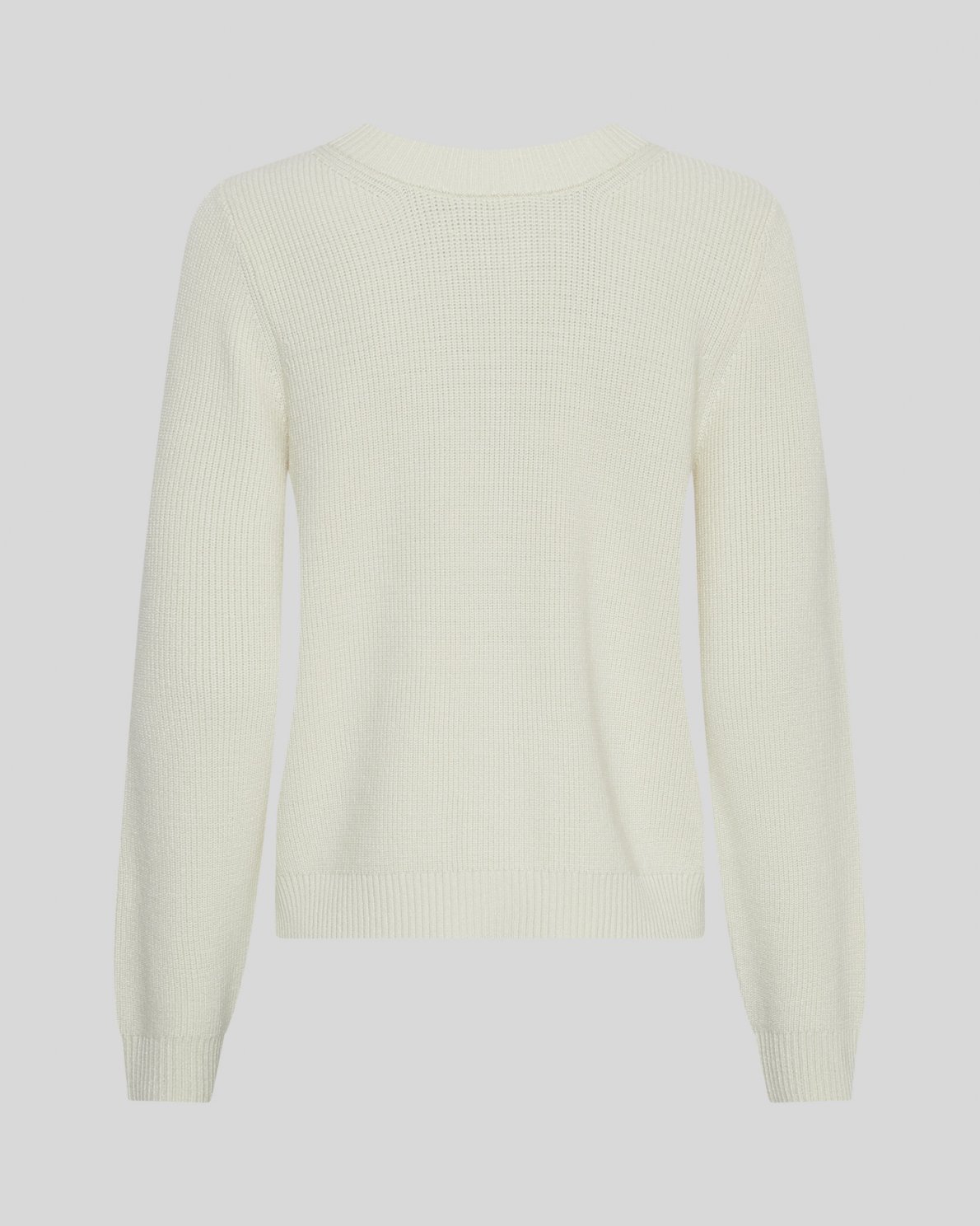Ein leichter Pullover, der sowohl mit Knöpfen vorne als auch hinten getragen werden kann. Er verfügt über einen Rundhalsausschnitt und eine offene Schlitzgestaltung an den Knöpfen. Der Pullover hat gerippte Bündchen, die für eine dezente Variation im Muster sorgen.
