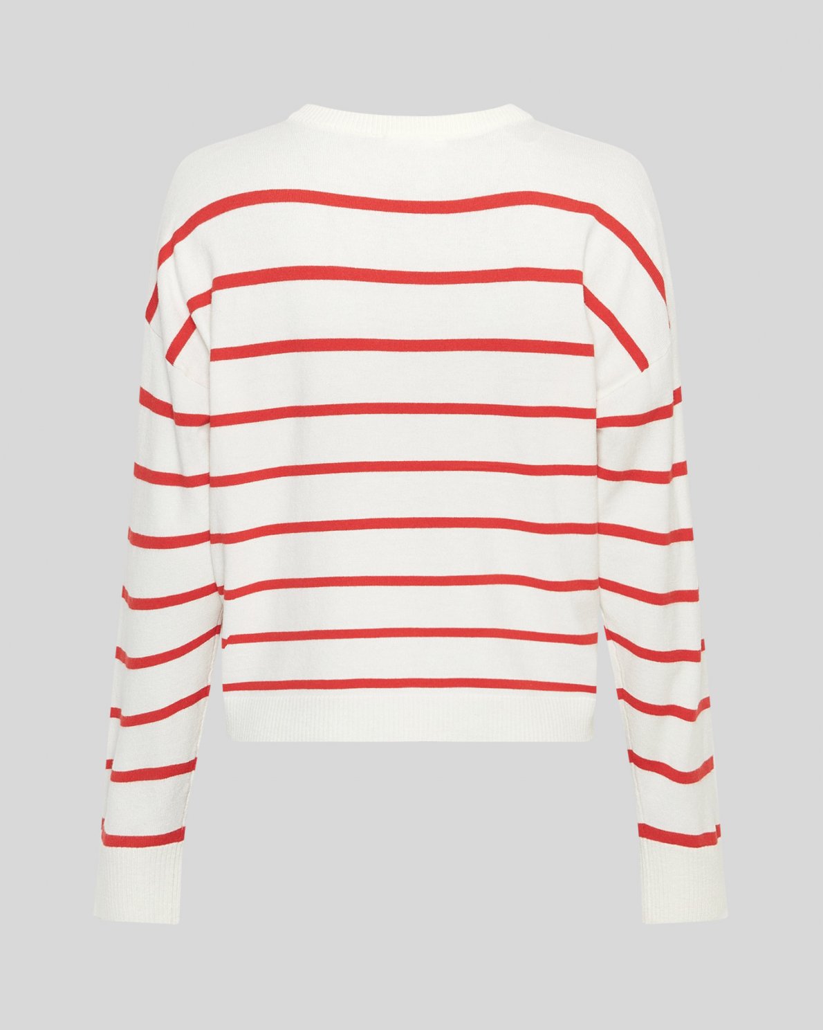 Der Maura Rachelle V Pullover ist ein wunderbar weicher und leichter Strick, der Komfort und Stil perfekt verbindet. Aus einer hochwertigen Materialmischung gefertigt, überzeugt dieser Pullover durch seinen klassischen Rundhalsausschnitt, eine entspannte Passform und ein schönes gestreiftes Design. Gerippte Details an Bündchen und Saum verleihen subtile Struktur, während die leicht überschnittenen Schultern eine lässige und mühelose Silhouette schaffen. Ob kombiniert mit Jeans für einen entspannten Look oder mit einem Rock für ein eleganteres Outfit – dieser vielseitige Pullover gehört in jedes Kleiderschrank.