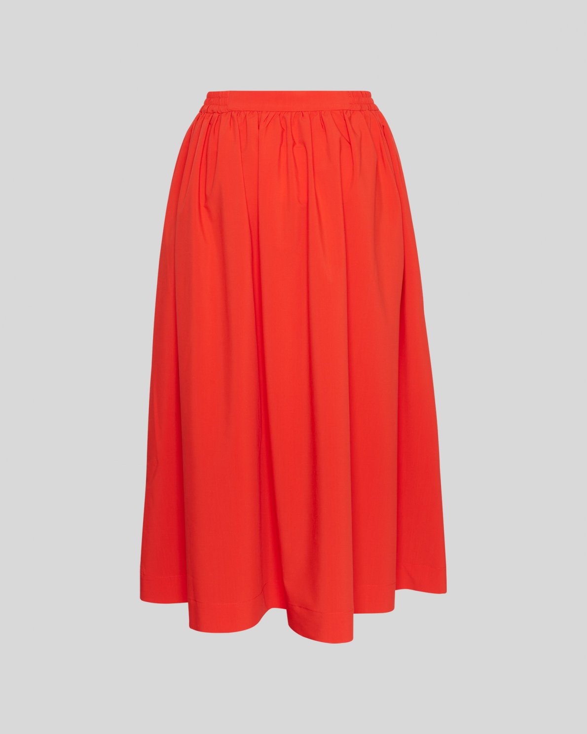 This skirt as a tailored fit. The model is 179cm and wears a size S.