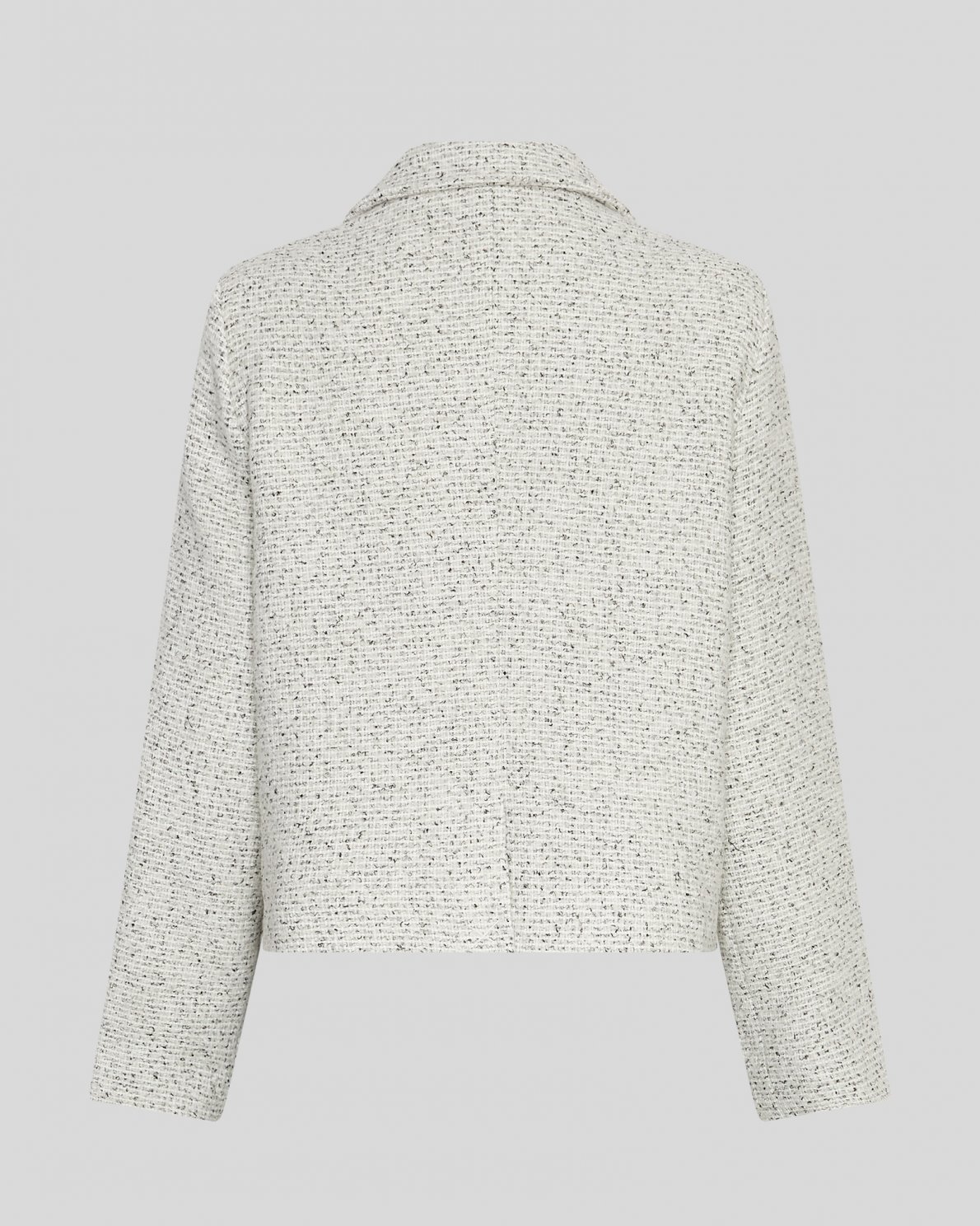 Aideena ist die perfekte kurze Jacke, die Sie bei jedem Anlass begleitet. Sie verfügt über ein gepolstertes Schulterdesign, schöne kontrastierende Knöpfe vorne, Seitentaschen und lockere Ärmel. Gefertigt aus feinstem Tweed-Stoff verleiht sie Ihrem Look zeitlose Eleganz. Die lockere, entspannte Passform sorgt für maximalen Komfort und eine lässige Silhouette. Erhältlich in einem wunderschönen Graumelange, damit Ihr stilvolles Outfit auffällt und Sie Ihre Individualität zeigen können. Kombinieren Sie sie mit passenden Hosen für einen kompletten Look zu besonderen Anlässen oder tragen Sie sie zu Ihrer Lieblingsjeans von MSCH für einen entspannten Stil.