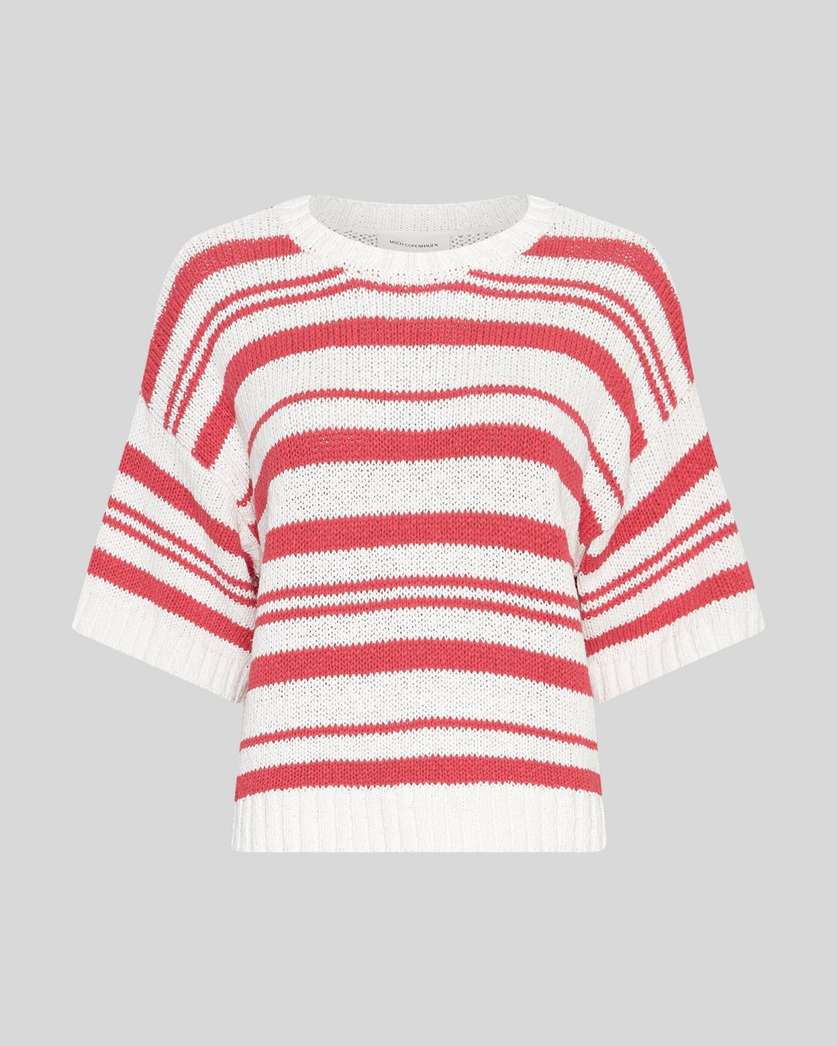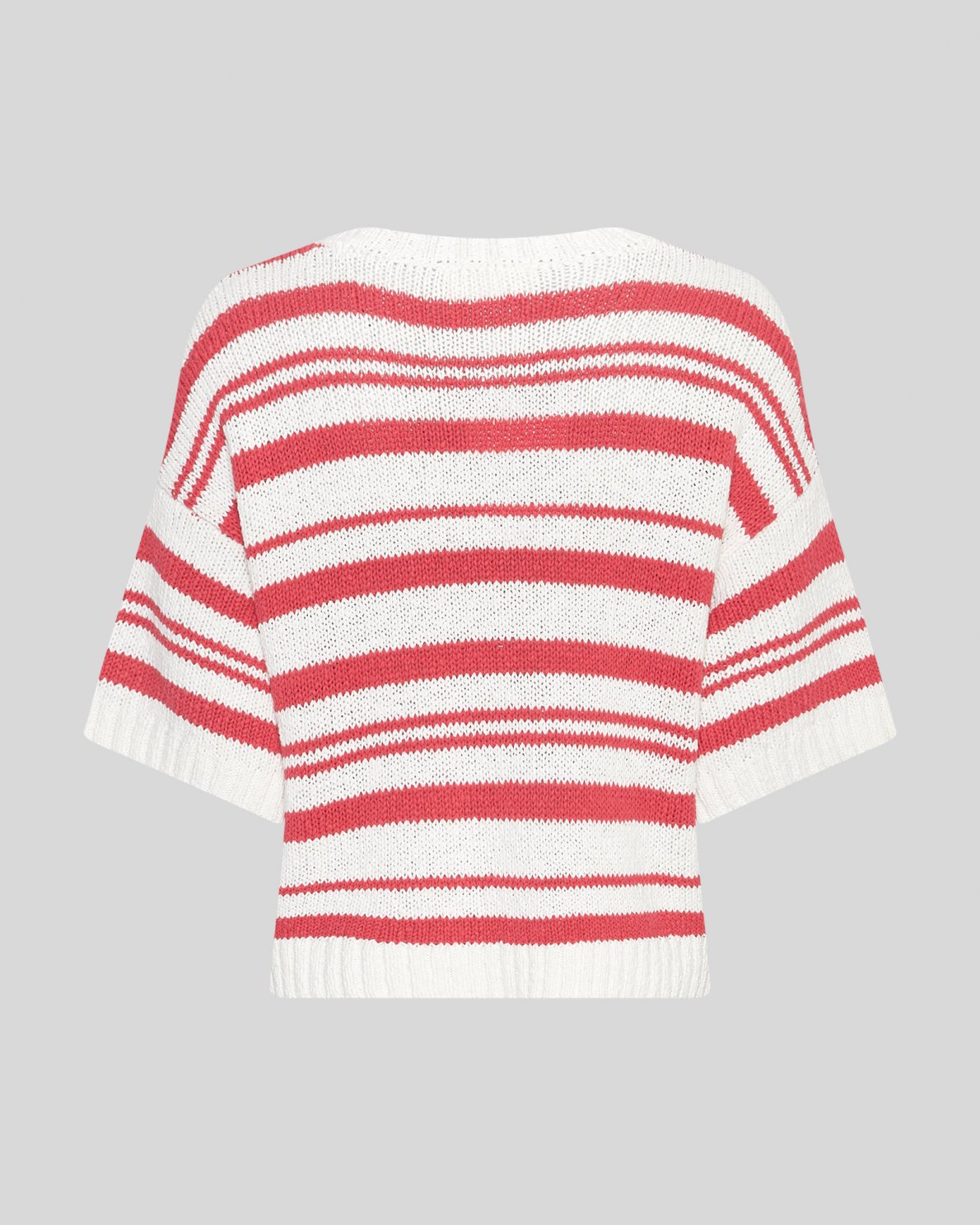 Short sleeve knit pullover with horizontal stripes in a soft material. It is a soft knit pullover with round neckline and dropped shoulders, which can be an effortless edition to any outfit, and a strong foundation for a versatile wardrobe. Combine with your go-to jeans, an easy-breezy summer skirt or elegant pants, it can make an effortlessly chic outfit in no seconds.
