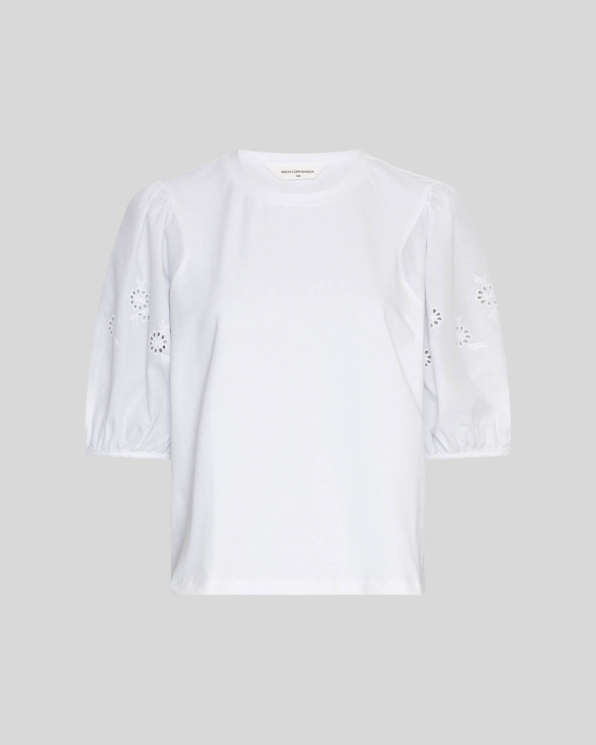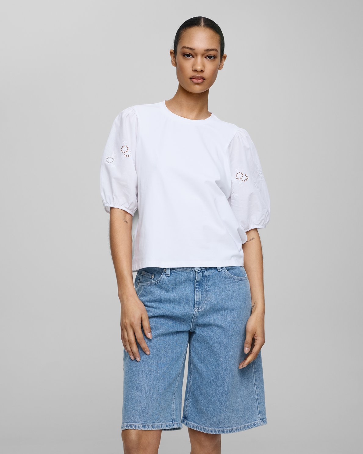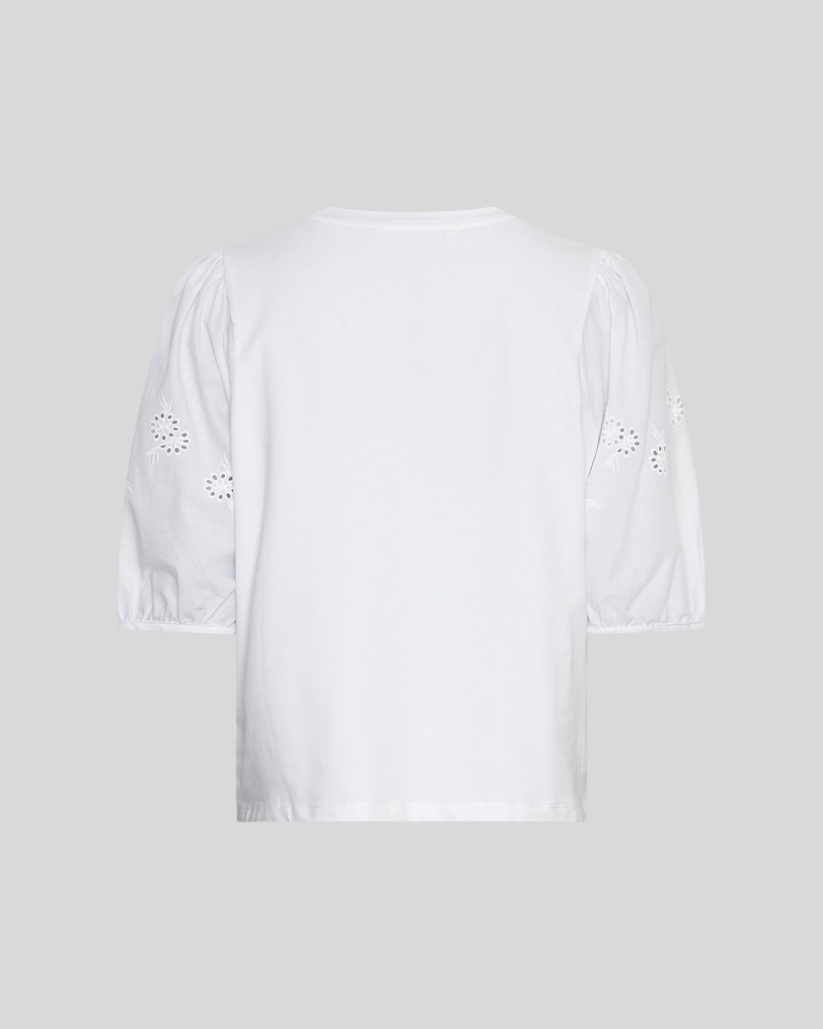 The Cebrina top is a jersey top, with a round neckline, 2/4 sleeves which have a floral embroidery detail. It's a great everyday top, as it will elevate a simple outfit.