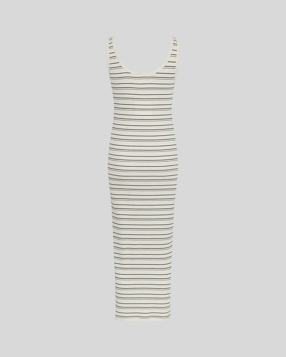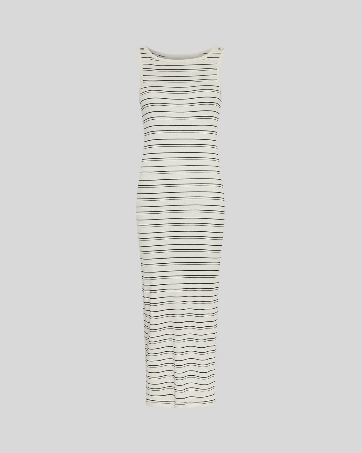 Our favorite Rasmia style, now in a long dress. The dress is slim fitted, tanktop style and in a beautiful striped design.