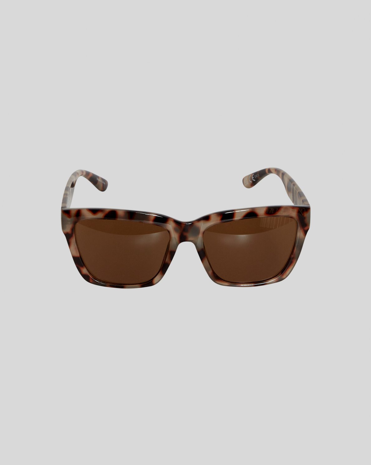 Diese Sonnenbrille hat eine quadratische Form und dunkle Gläser in einem verblassten Braunton. Sie bietet UV400-Schutz und wird in einem Kordelzugbeutel geliefert.