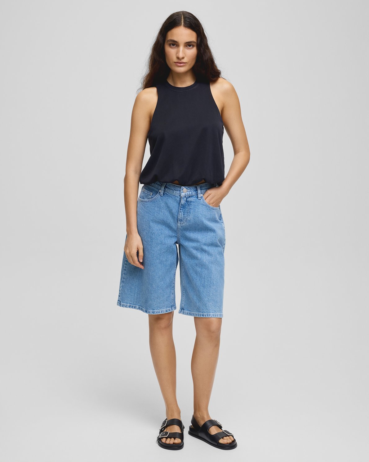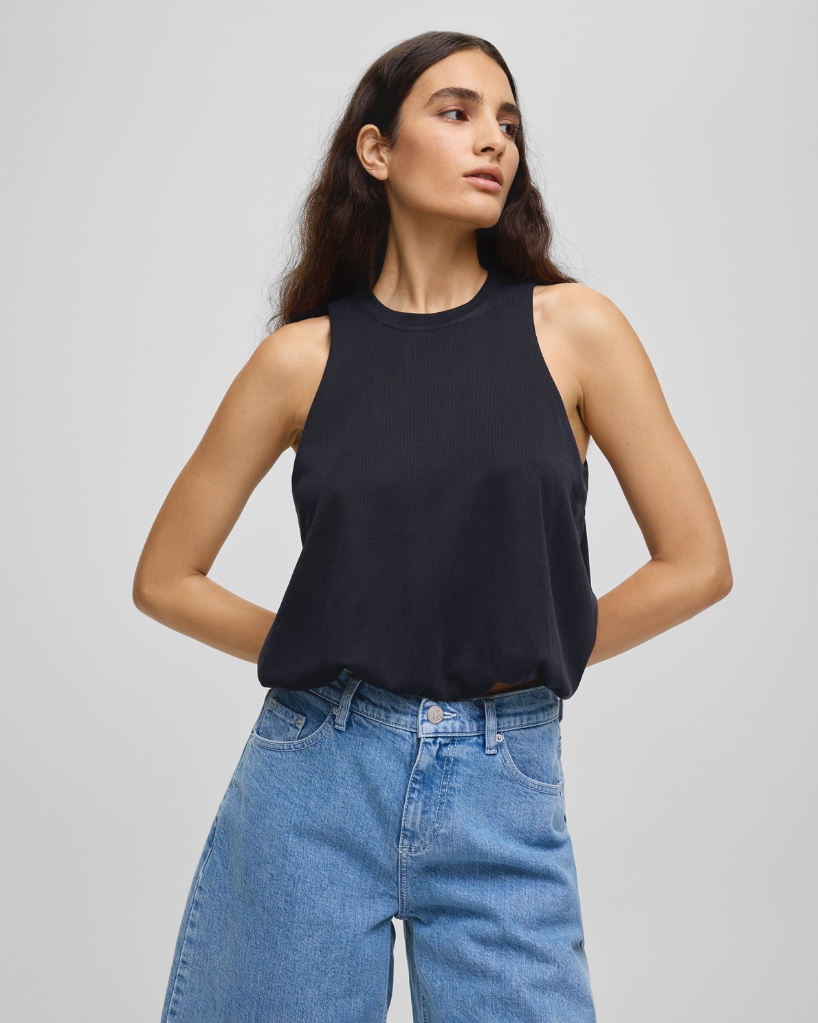 Belle is our new take on a summer top, featuring a balloon shape at the bottom creating this gorgeous flow. The top has a a sleeveless design and a round neckline.