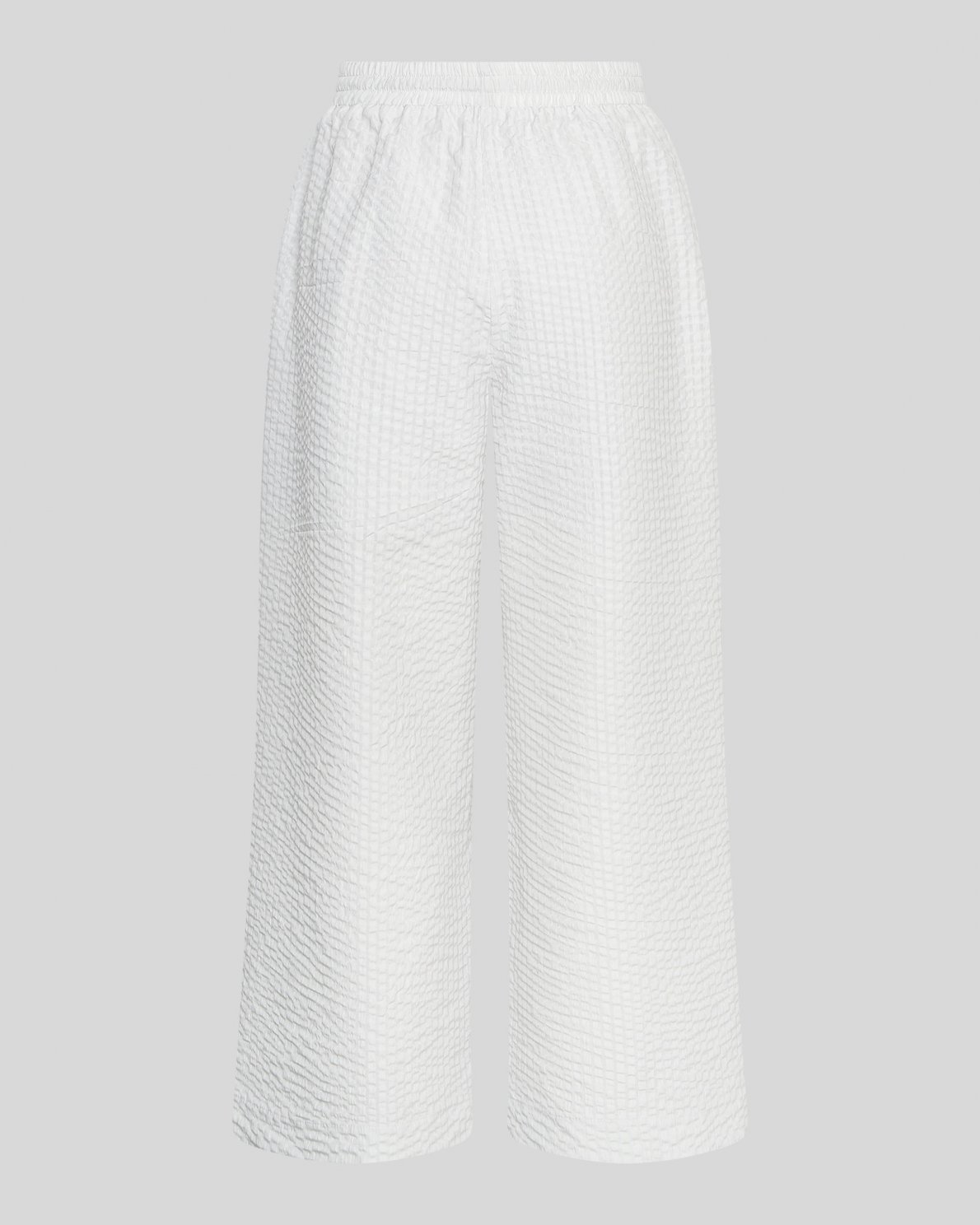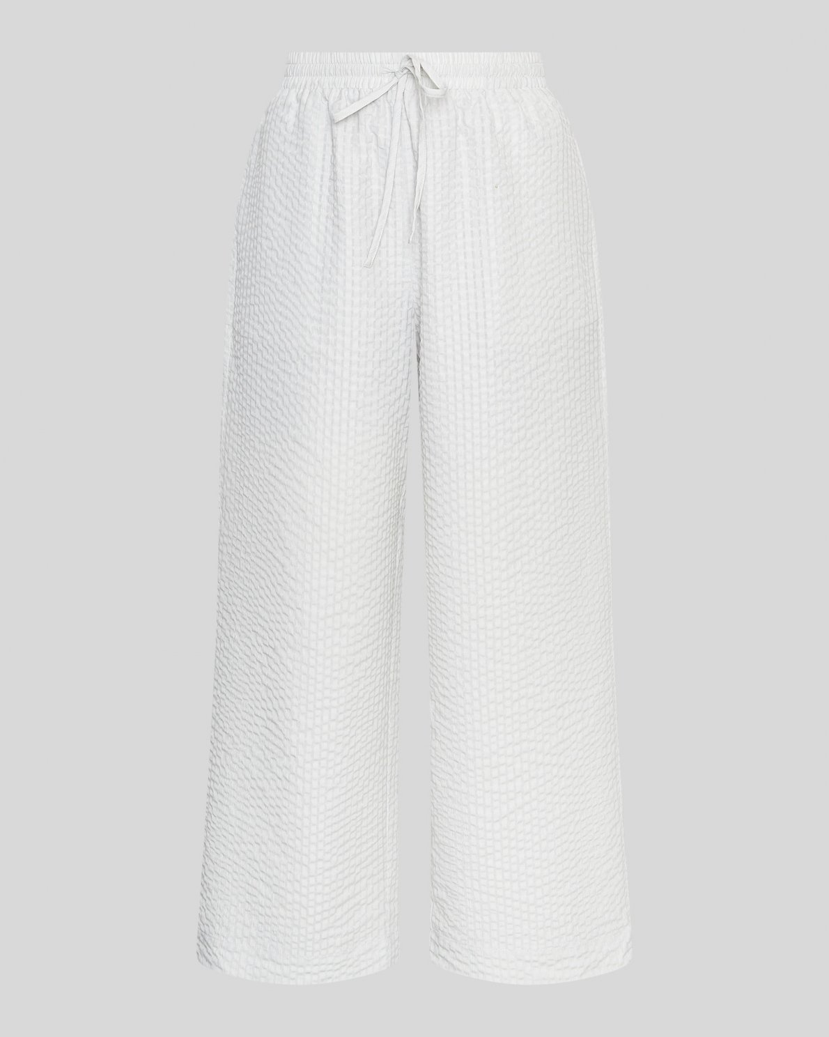 The Groove pants is a pair of pull-up pants with a tie string detail. The material is thin so to ensure coverage there is a lining underneath. The layer underneath is only in a shorts length and not full length. The pants has a straight fit and has side pockets.