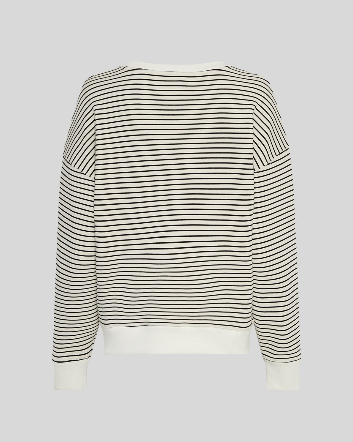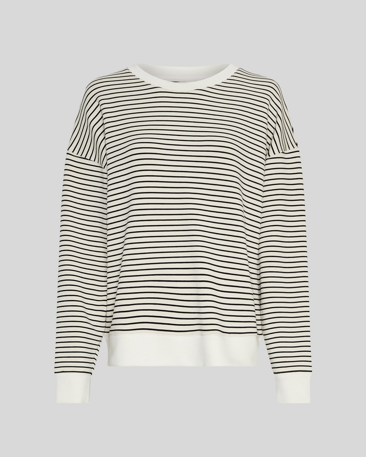 Ein zeitloser Klassiker mit modernem Akzent. Das Nilda Sweatshirt besticht durch weiche, ocker-schwarze Streifen, überschnittene Schultern und eine entspannte Silhouette – für bequemen Tragekomfort und leichtes Styling im Alltag. Kombinieren Sie es mit Denim, tragen Sie es über einem Kleid oder zusammen mit passender Loungewear für einen lässigen Freizeitlook.