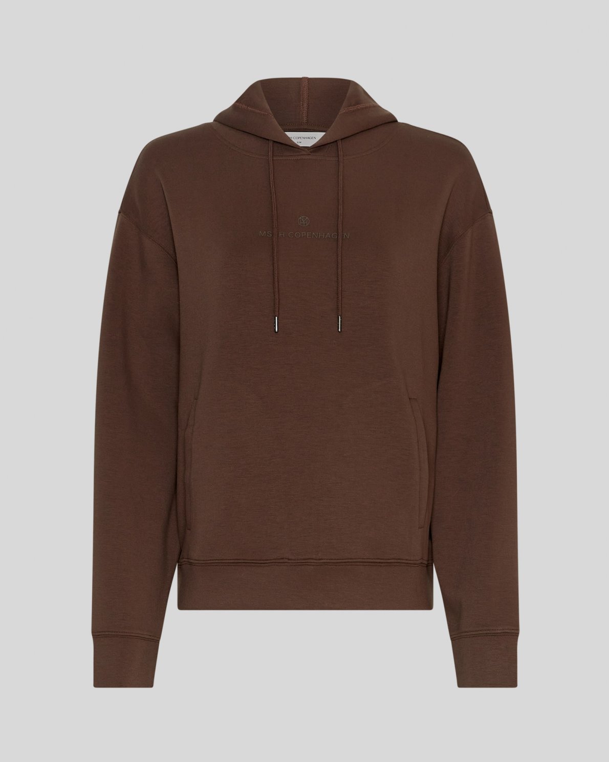 The MSCHima Q Icon Logo Hood Sweatshirt combines style and comfort. This hoodie offers a loose fit with drop shoulders and an adjustable hood. The logo print on the front adds a modern touch.
