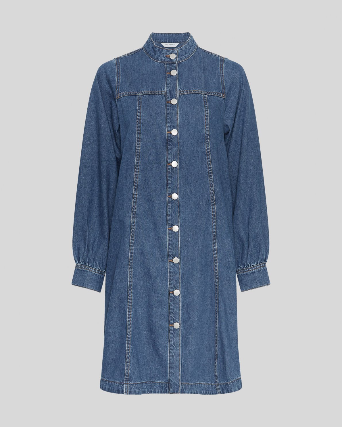 The MSCHRylan Elena Shirt Dress is a modern take on the classic shirt dress. Made from 100% organic cotton, it features a loose A-line fit, long puff sleeves, and an elegant mandarin collar. The full button placket and discreet side pockets add both functionality and a stylish touch.