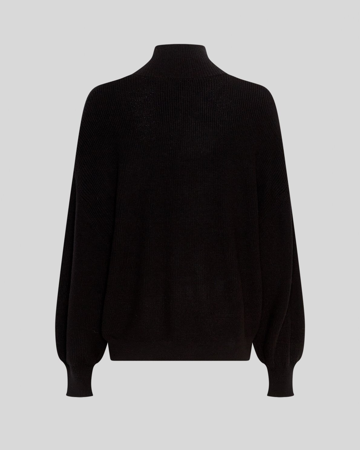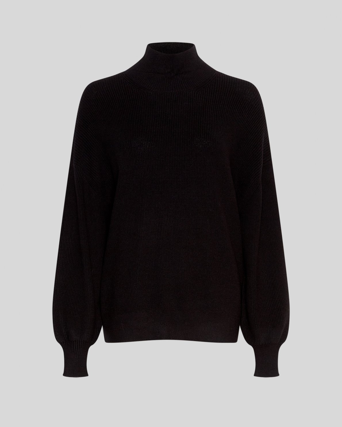Magnea is the perfect rib pullover that comes with a very trendy oversized fit, giving you a bit of a boxy look, yet hugging your skin tight at the high rib cuffs. It features dropped shoulders with loose fitted sleeves and high neck. It is a perfect addition of a chic and casual outfit, paired with skinny jeans or a pair of statement high-waist jeans.
