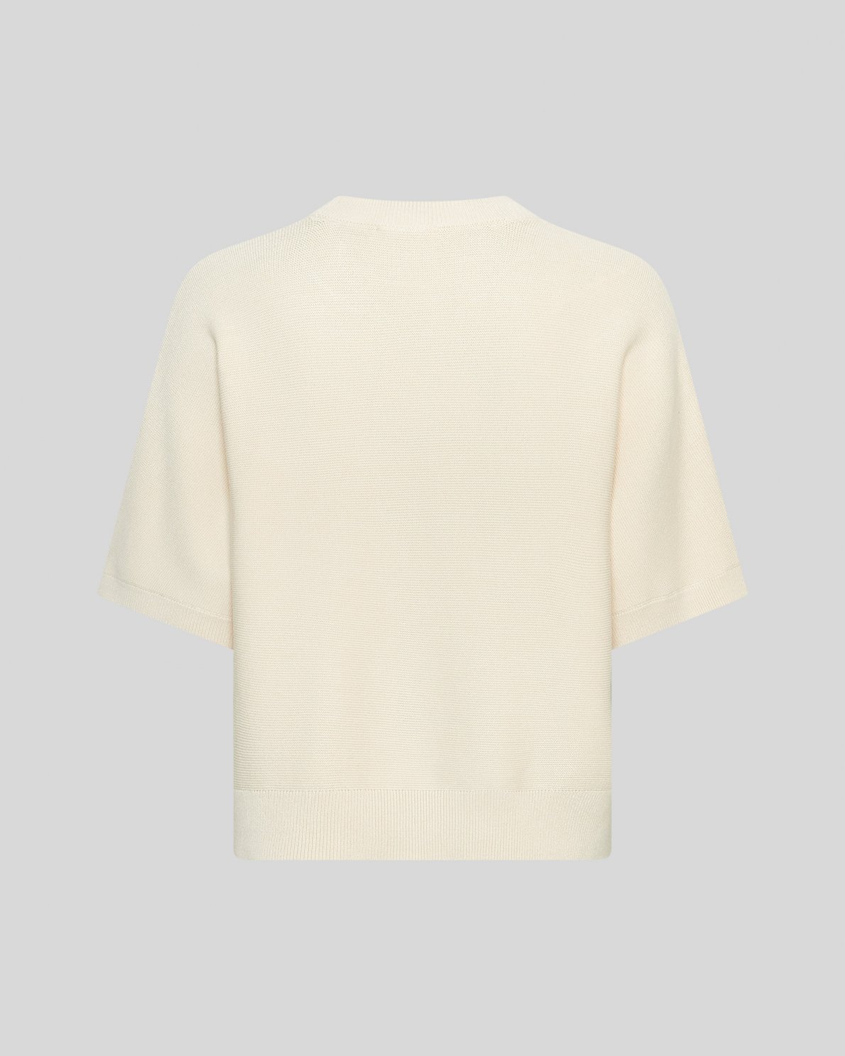 Thamira is a fine knitted pullover, with a round neckline, 2/4 sleeves and a slim fitted rib edge at the bottom. The pullover features bat sleves that will give a slightly oversized illusion.