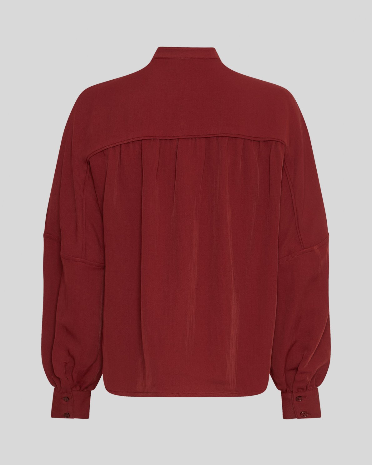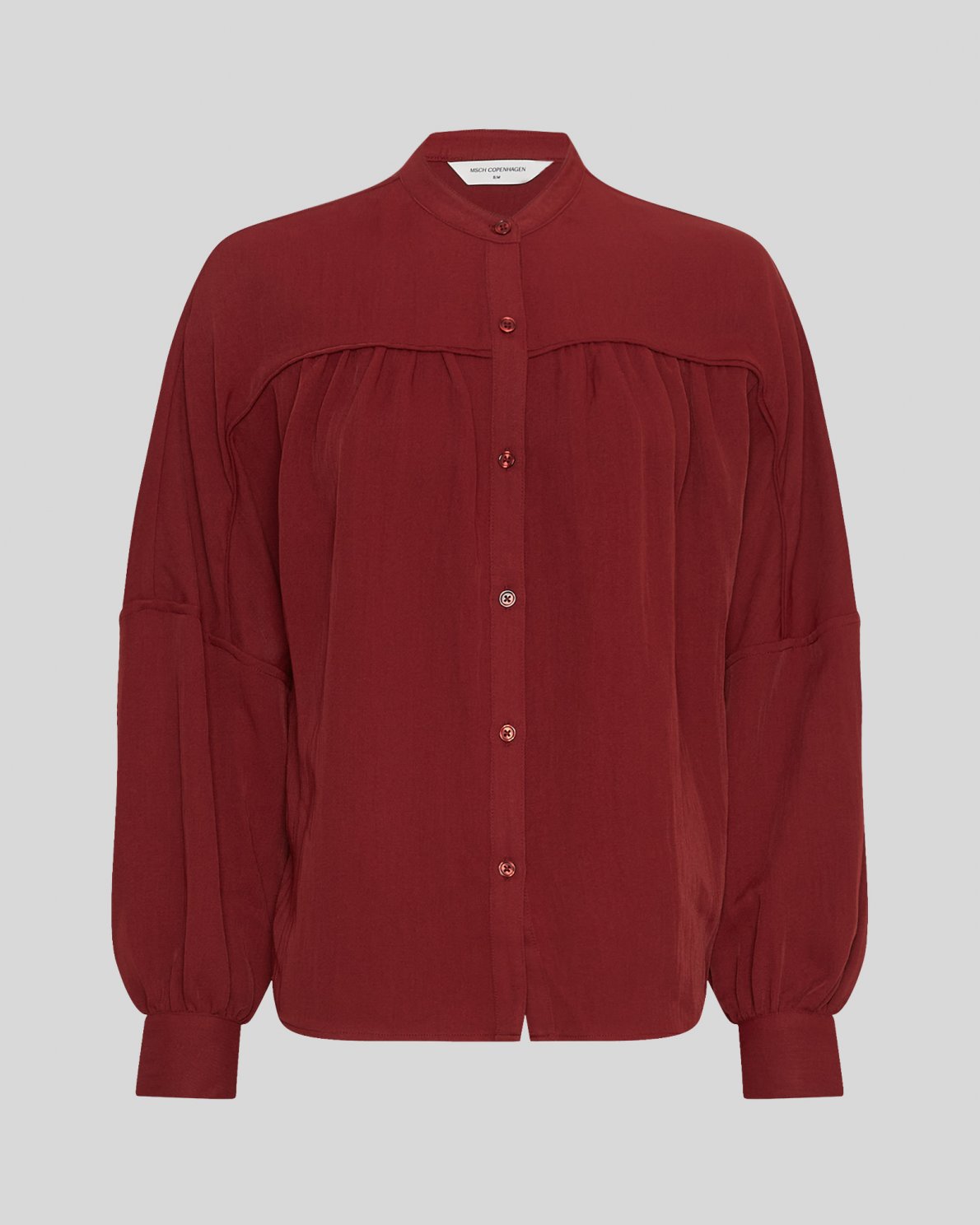 Add a touch of refined structure to your wardrobe with this bold red shirt. Designed in lightweight polyester, it features a sleek mandarin collar, front buttons, and subtle cutline detailing that brings contemporary elegance. Whether styled solo or layered, this shirt is an effortless way to make a statement.