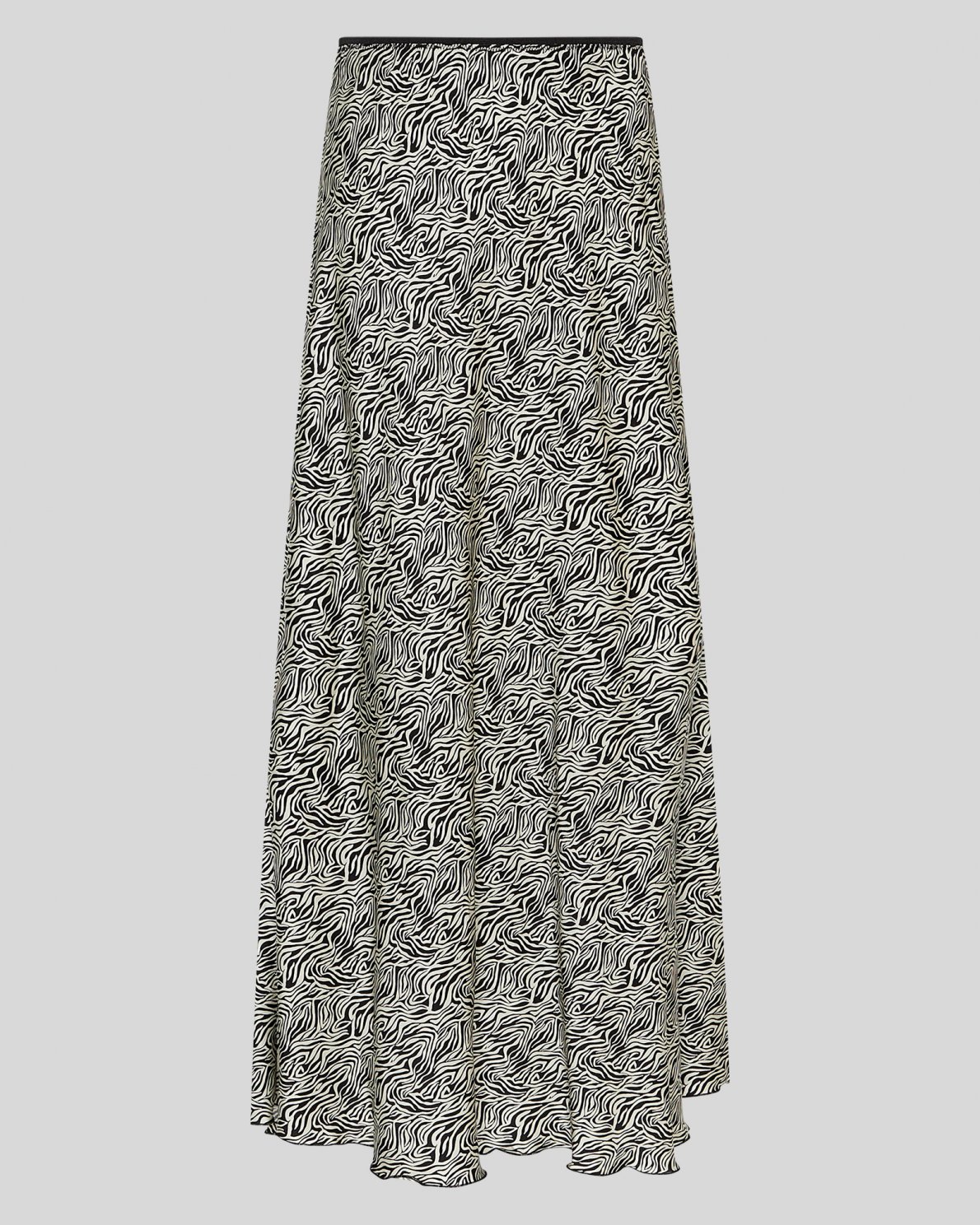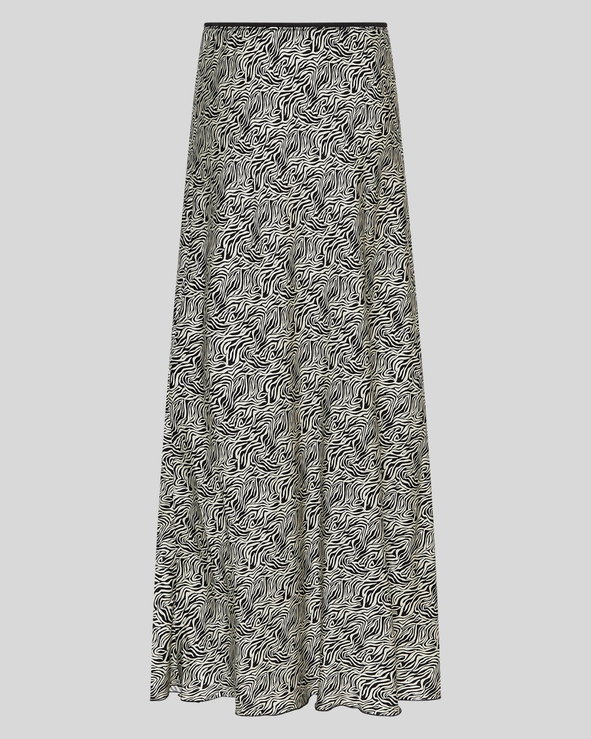 Clarette ist ein langer, fließender Rock aus weicher Polysilk in klassischem Leopardenmuster. Er verfügt über einen elastischen Bund, der für erhöhten Komfort und eine zeitgemäße Ausstrahlung sorgt. Der Rock lässt sich je nach Anlass sowohl elegant als auch leger kombinieren und passt perfekt zu High Heels oder Sneakers.