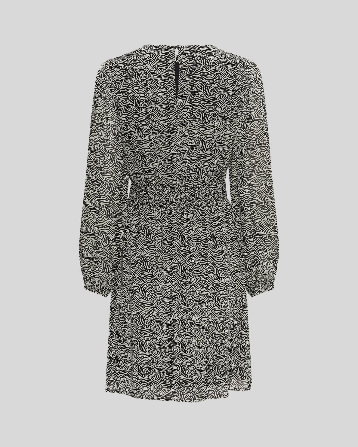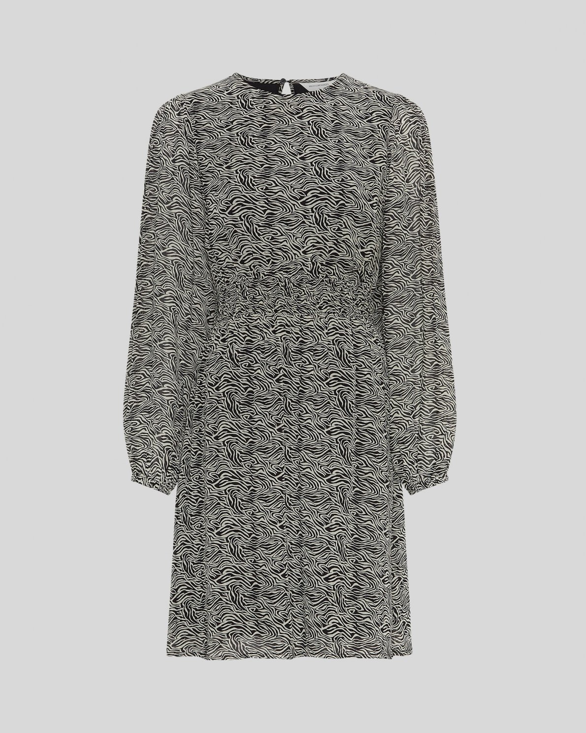 The Cielo Short Dress offers a flattering, feminine silhouette in a minimal and easy-to-style design. It features a round neckline and long sleeves with slim elastic cuffs for comfort and shape. A wide smock detail defines the waist, creating gentle volume and structure through the skirt. With its clean look and subtle detailing, it's a versatile piece—perfect for styling up or down depending on the occasion.