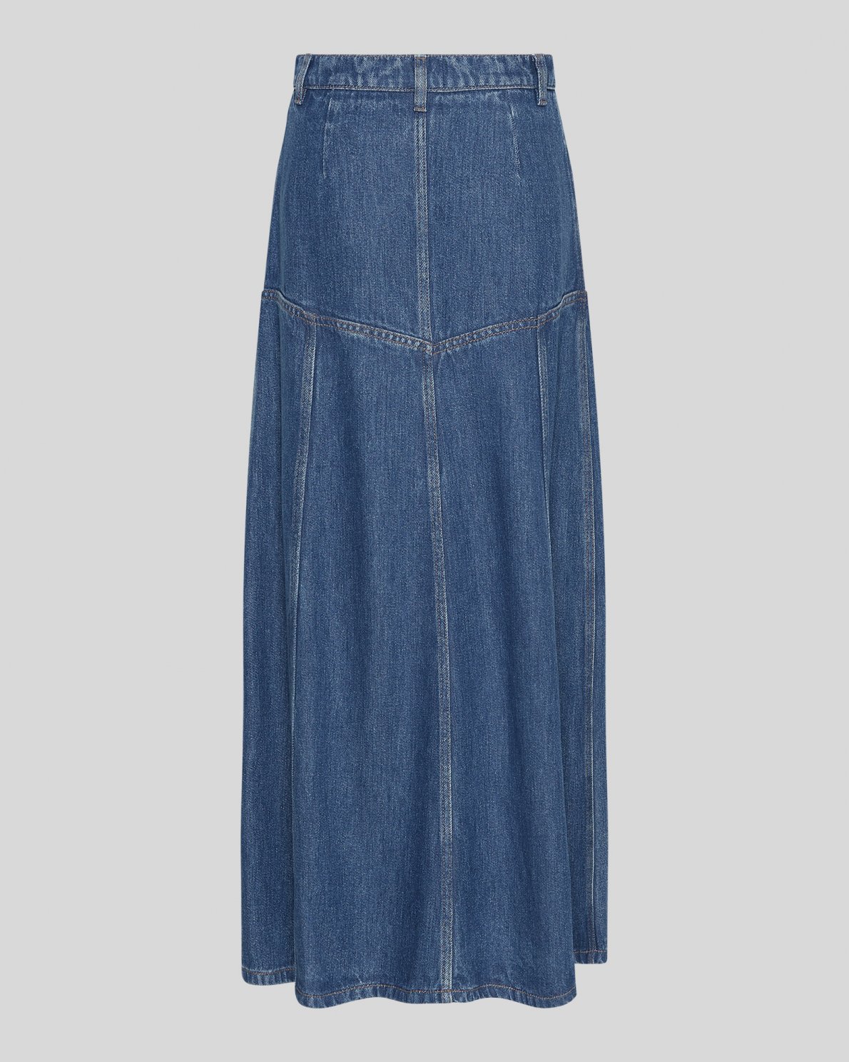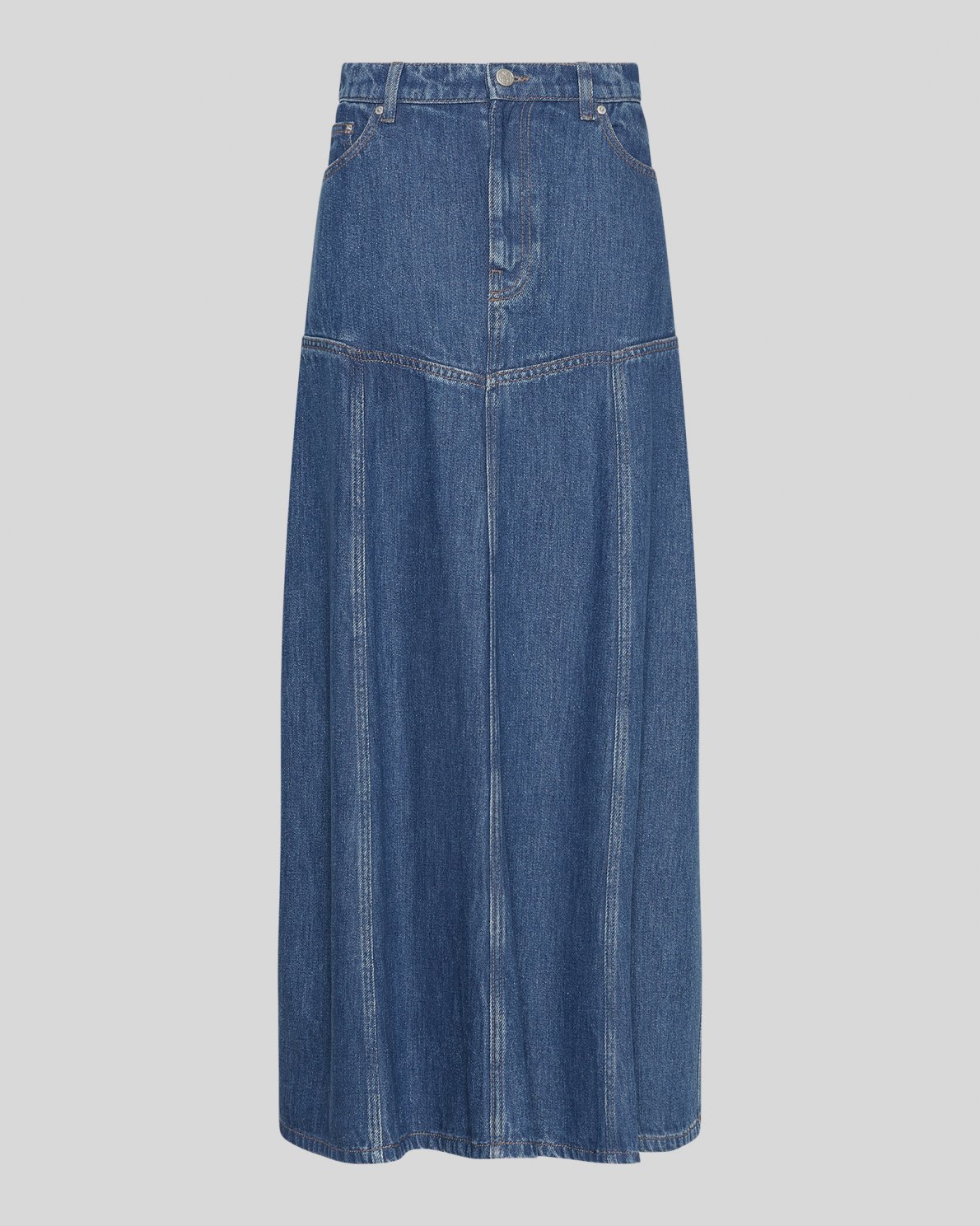 The Laurentine Skirt combines the look of denim with the softness of TENCEL™. Designed in a flattering maxi length, this skirt features clean cutline details that add structure while maintaining an effortless feel. The fabric drapes beautifully, offering comfort and movement without the stiffness of traditional denim. Perfect for pairing with everything from crisp shirts to relaxed knits—this is a go-to piece for easy elegance.