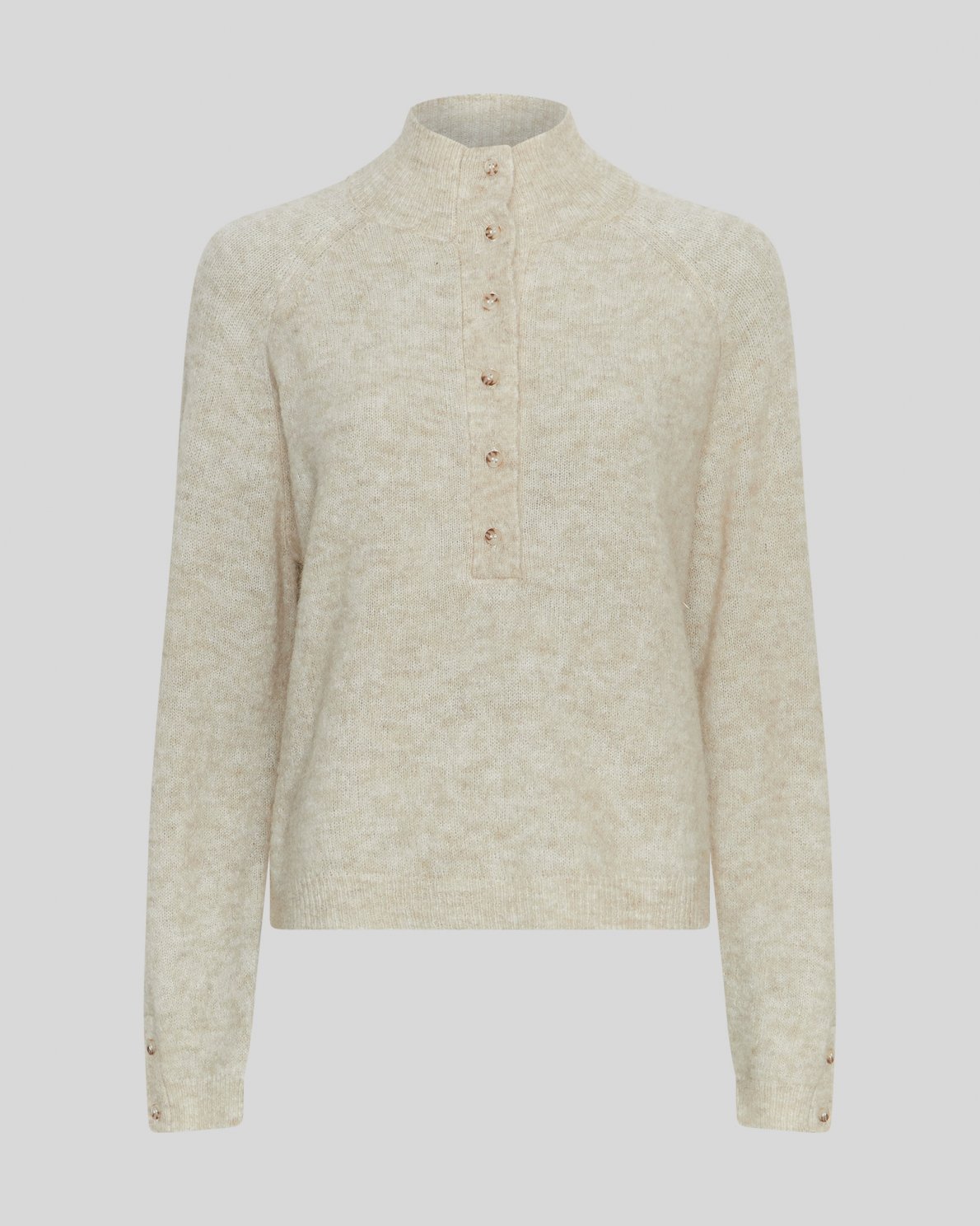 The Milania M Pullover is a cozy knit crafted in a soft, fluffy yarn. It features a half placket with tone-in-tone buttons that blend seamlessly with the fabric for a refined, minimalistic look. With its relaxed silhouette and elegant detailing, this pullover is perfect for effortless everyday styling. Wear it with jeans or tailored trousers for a casual yet polished outfit.