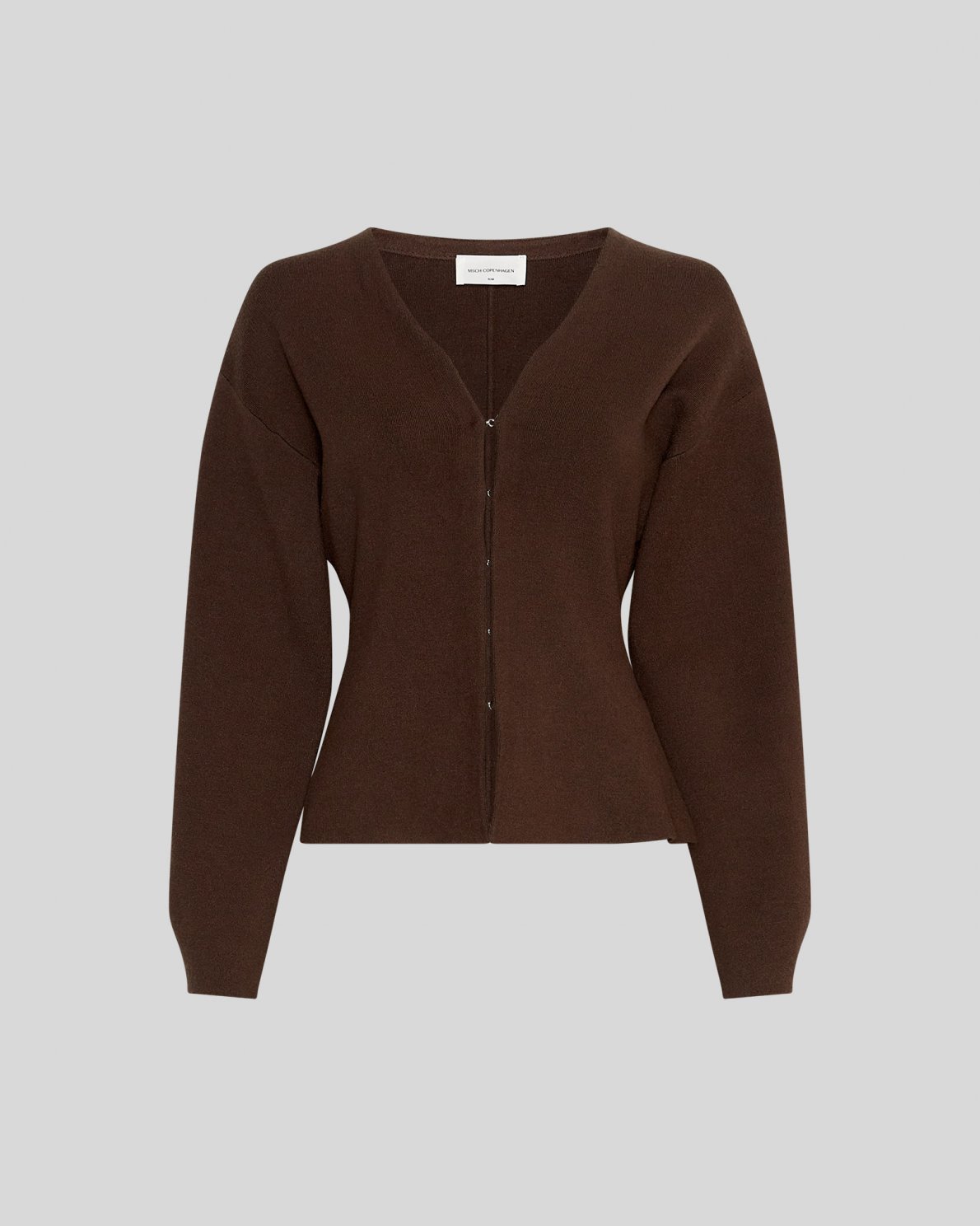 The Mercy Cardigan is an elegant, minimalistic knit featuring a deep V-neck and delicate hook closure. Designed with a slim silhouette and slightly dropped shoulders, it balances structure with ease. The long sleeves taper subtly at the cuffs, adding a refined touch to the overall shape. Its clean design makes it a timeless piece for both casual and dressed-up looks.