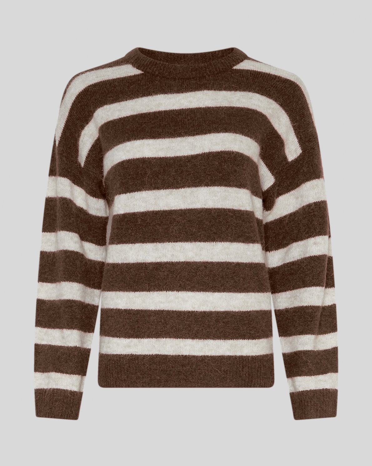 A timeless MSCH Copenhagen knit pullover with stripes. Crafted from high-quality wool and alpaca blend, this pullover offers exceptional warmth, softness and durability. Its cozy structure makes for a perfect companion for chilly days, ensuring you stay both warm and stylish. The slightly dropped shoulders and the rib knit cuffs provide a relaxed and easy-going vibe.The round neckline adds a touch of simplicity, making this pullover a highly versatile style. Pair it with an elegant shirt underneath for a formal outfit, a pair of relaxed fit jeans or your favorite long skirt. Elevate your style with this cozy essential.
