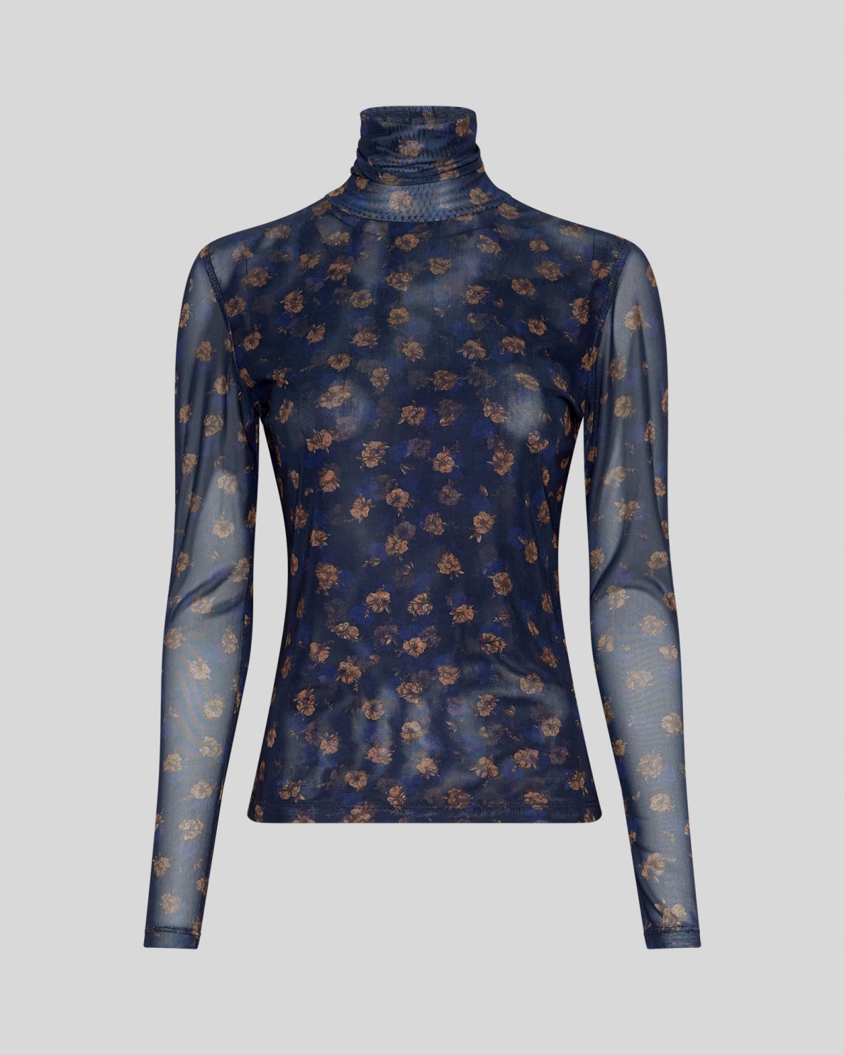 The MSCH Ginie Illenora Top AOP is a long-sleeved mesh blouse with a high neck and a feminine all-over floral print. The slightly sheer fabric creates a modern and elegant expression, making it ideal for layering. Wear it under a blazer or knit for a sophisticated look, or style it on its own with jeans or a skirt for a feminine outfit.