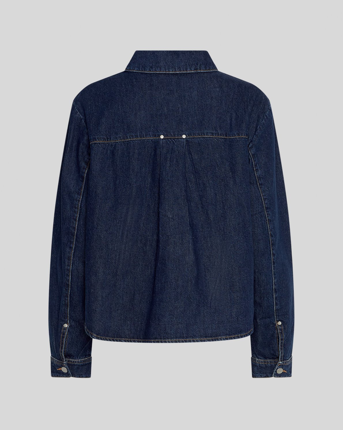The MSCH Adna Alena Shirt is a classic denim shirt with long sleeves and a button-down front. Its cropped, boxy fit adds a modern twist to the timeless denim look, while the deep blue wash makes it easy to style with anything from trousers to skirts. Wear it as a shirt on its own or open as a light jacket – a versatile piece for both everyday wear and cool layered outfits.