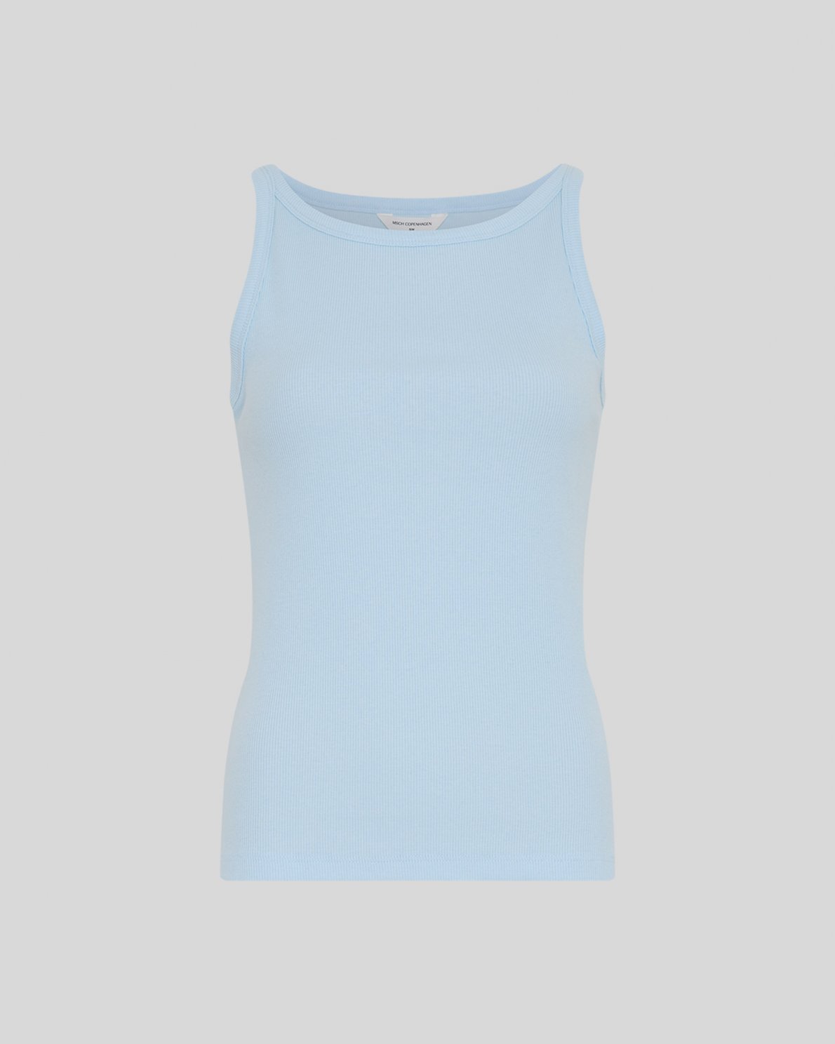 Rippstrick-Tanktop aus weicher Baumwollqualität mit Stretchanteil. Mit Rundhalsausschnitt und ärmelloser Silhouette. Schmale Passform.