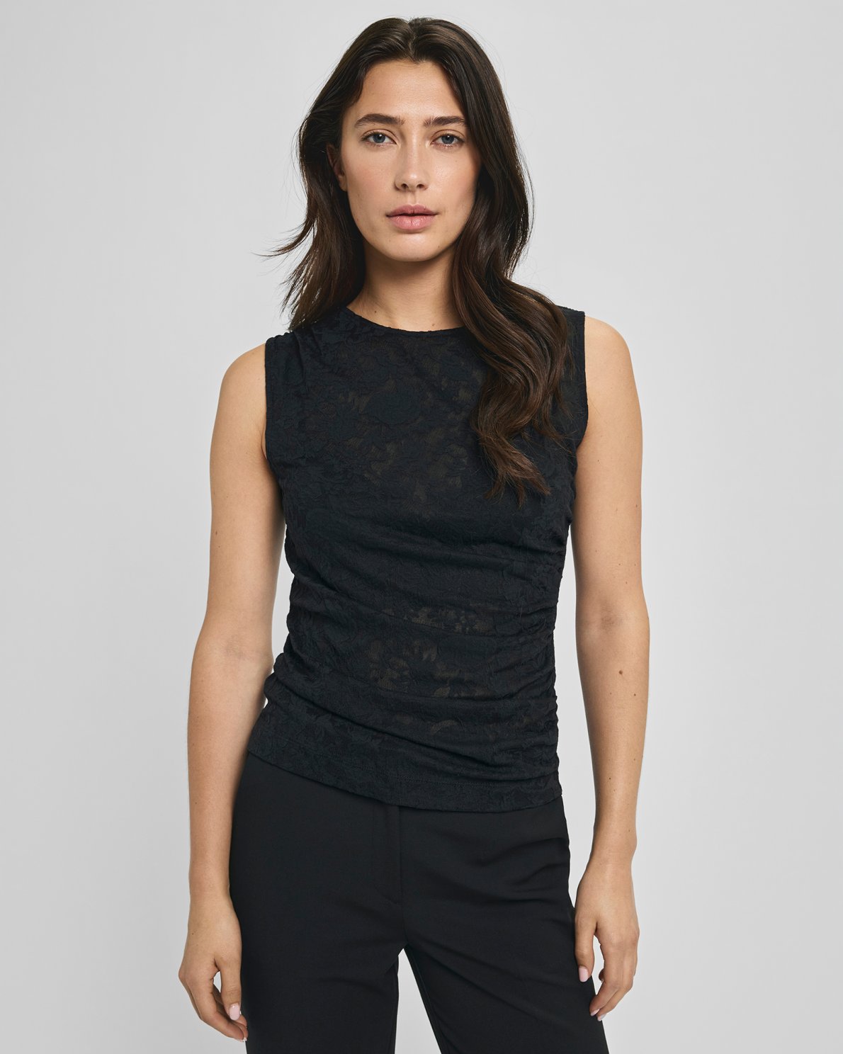 Brigetta ist ein ärmelloses Top mit leichter Drapierung an der Seite, die durch eine wunderschöne Spitzenstruktur entsteht. Der Stoff fühlt sich weich auf der Haut an, was das Top ideal für ganztägiges Tragen macht. Dieses Top verbindet modernes Design mit mühelosem Stil und ist ein unverzichtbares Kleidungsstück für modebewusste Frauen. Das Design des MSCHBrigetta SL Top zeichnet sich durch eine schlanke Silhouette und minimalistische Ästhetik aus, was das Kombinieren mit Jeans, Röcken oder eleganten Hosen erleichtert. Die ärmellose Ausführung bietet optimale Atmungsaktivität bei gleichzeitigem Bedeckungsschutz und eignet sich hervorragend zum Tragen unter Jacken oder Cardigans in kühleren Monaten.