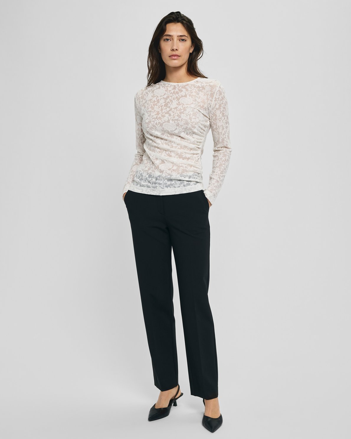 Dieses langärmlige Top ist ideal für all jene, die Qualität und Eleganz im Alltag schätzen. Die langen Ärmel und das vollständige Spitzen-Design verleihen dem Top einen zeitlosen und klassischen Charakter. Das atmungsaktive Material sorgt für angenehme Frische und Komfort – im Büro wie auch in der Freizeit. Das Top eignet sich hervorragend zum Layern und ist somit perfekt, um raffinierte Lagenlooks zu kreieren. Ob solo oder unter Blazer oder Cardigan – das MSCHBrigetta Top veredelt jedes Outfit. Seine klaren Linien und das dezente Design machen es sowohl für legere als auch für formellere Anlässe passend.