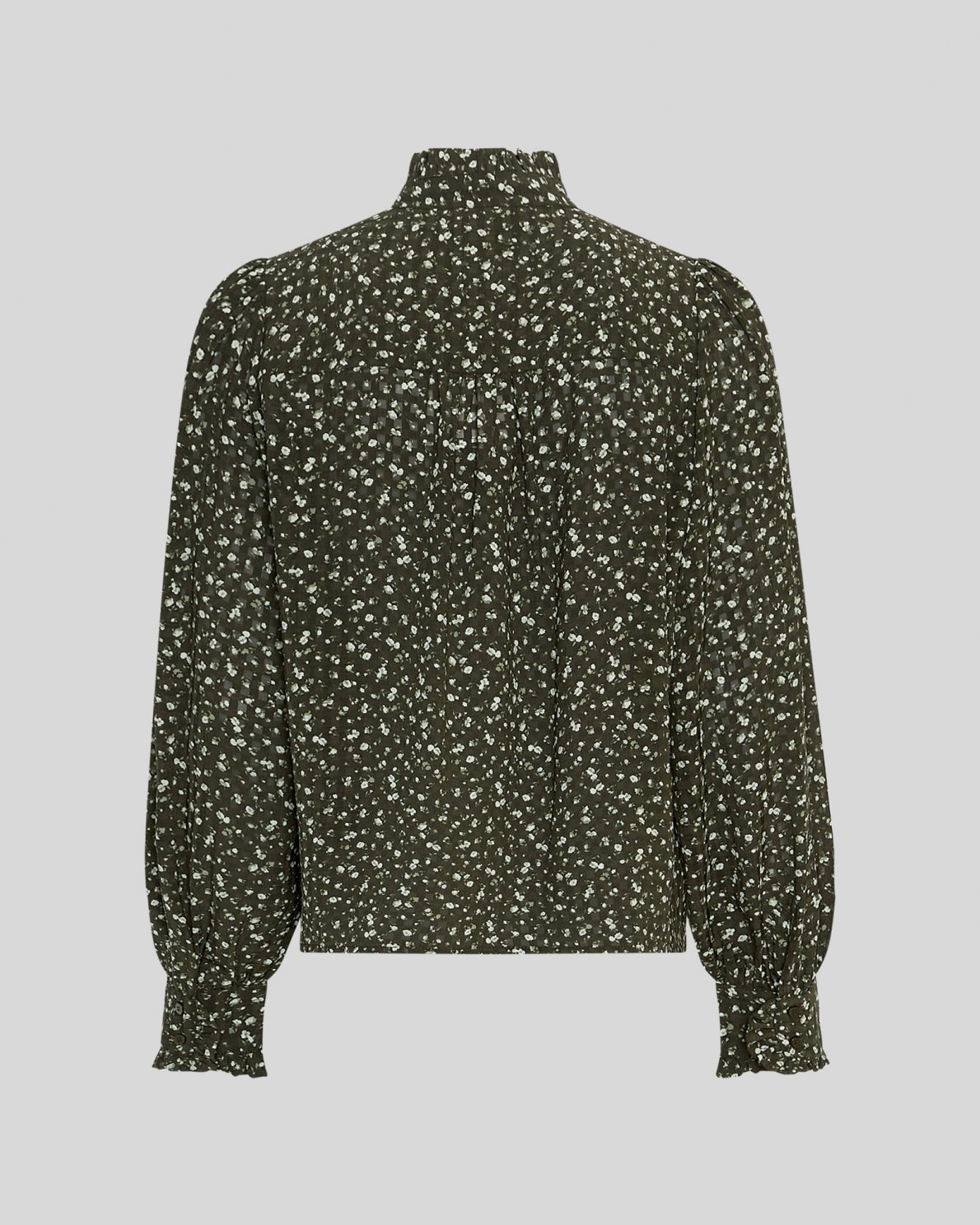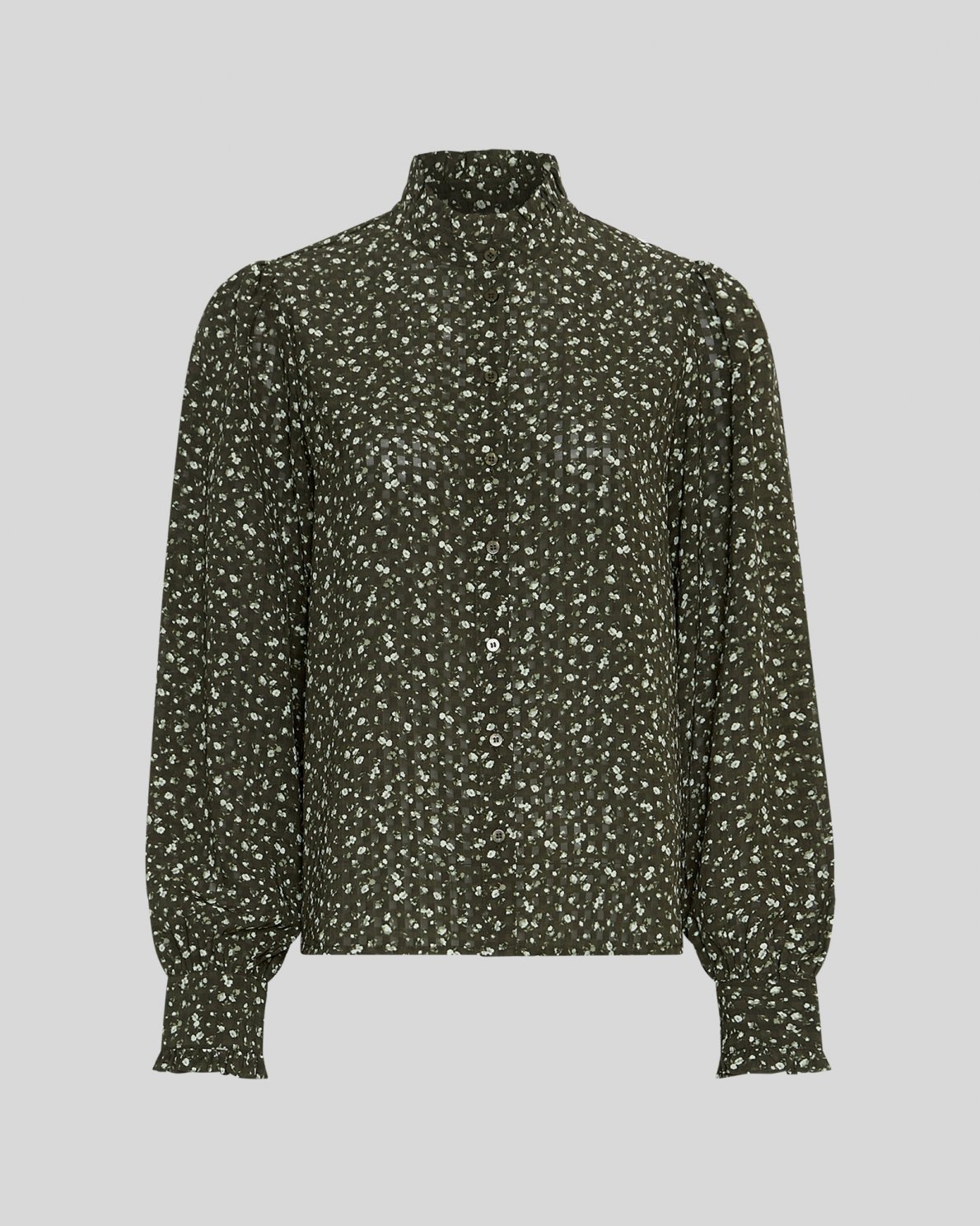 Das MSCHKaylen Oceanna Shirt AOP ist eine leichte Bluse mit zartem Blumenmuster und Stehkragen. Mit langen Ärmeln und Bündchen sowie einer lockeren, schmeichelhaften Passform bietet sie einen femininen und zugleich entspannten Look – ideal für Alltag und Büro.