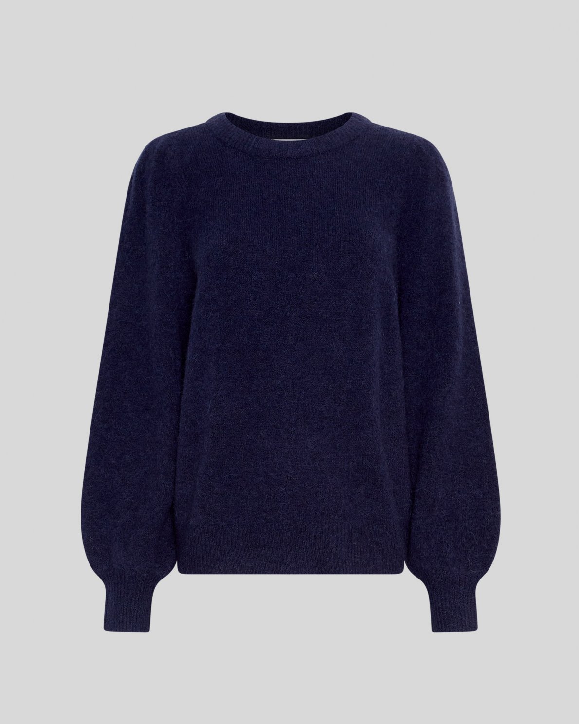 Dieser Pullover hat eine leicht lockere Passform, lange Puffärmel und einen Rundhalsausschnitt.
