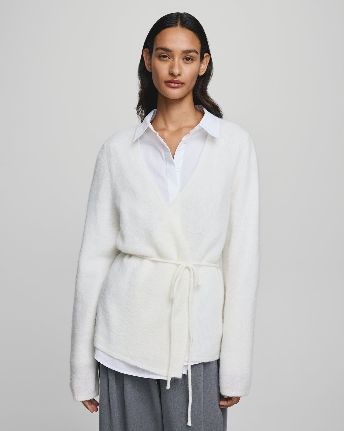 Dieser Cardigan hat eine leicht lockere Passform, die Sie dank des Gürtelbands in der Taille individuell anpassen können. Der Cardigan hat lange Ärmel.